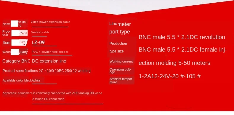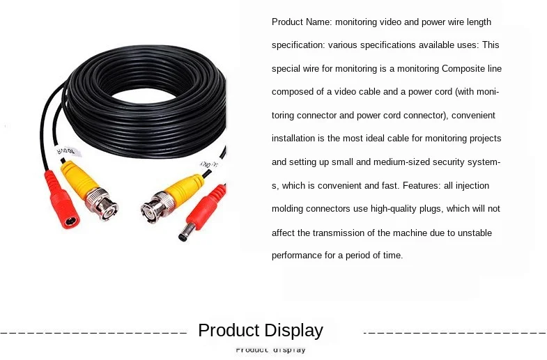 Uso: Una variedad de cámaras de seguridad como pistolas, máquinas de bolas, cámaras infrarrojas, DVR, cámaras de red y otros cables de equipos.