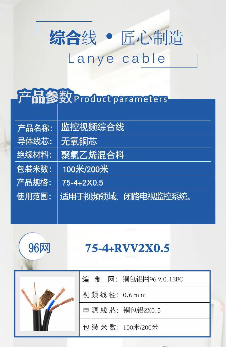 Comprar Línea de monitoreo con cable de alimentación monitoreo de línea integrada monitoreo cable integrado 75-4 + 2*0,5 línea de vídeo Rg59