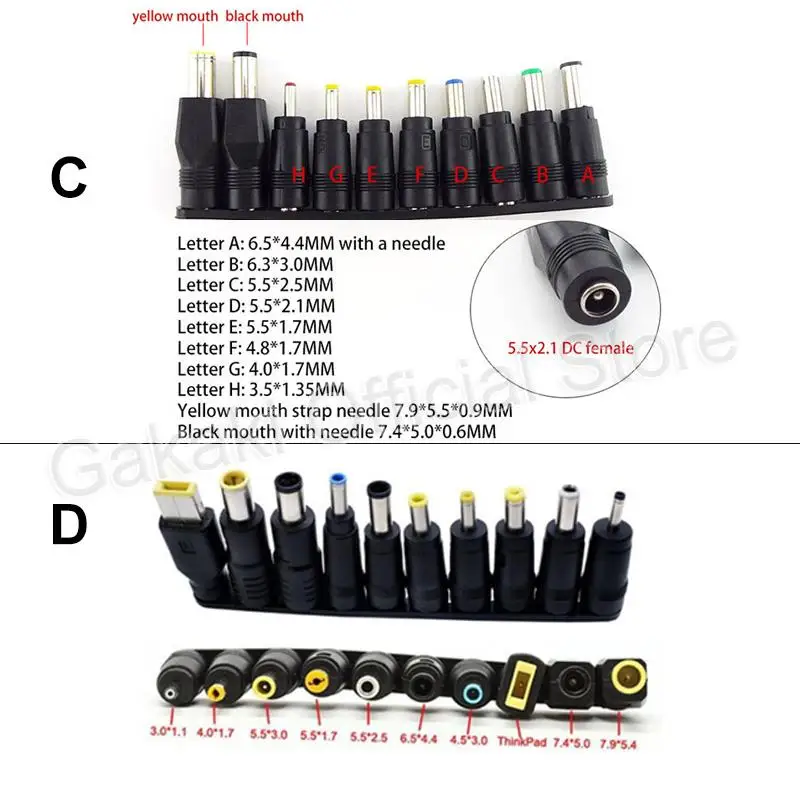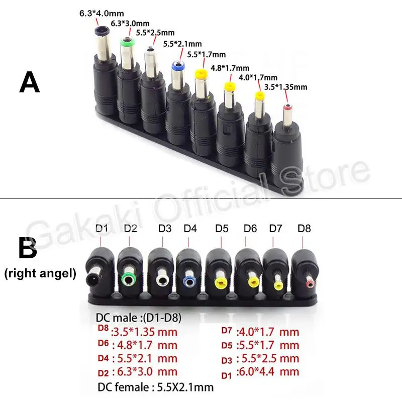 Si no está seguro, puede consultar con el fabricante o consultar en línea que venden equipos que empresas: Tamaño del enchufe de alimentación de CC si el diámetro exterior del diámetro interior es de 5,5 mm, tenga la seguridad de que si elige 2,1 mm.