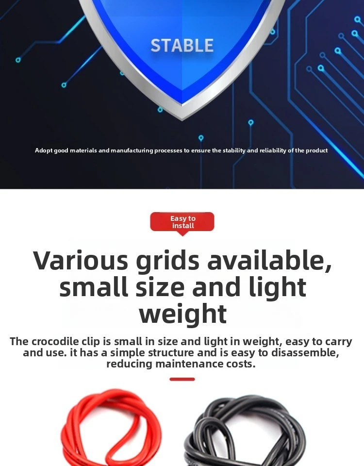 Línea Terminal de Clip de cocodrilo de dos extremos, 50CM, conexión en forma de U de 16/18/20AWG, línea de cortocircuito, línea de prueba de experimentos electrónicos