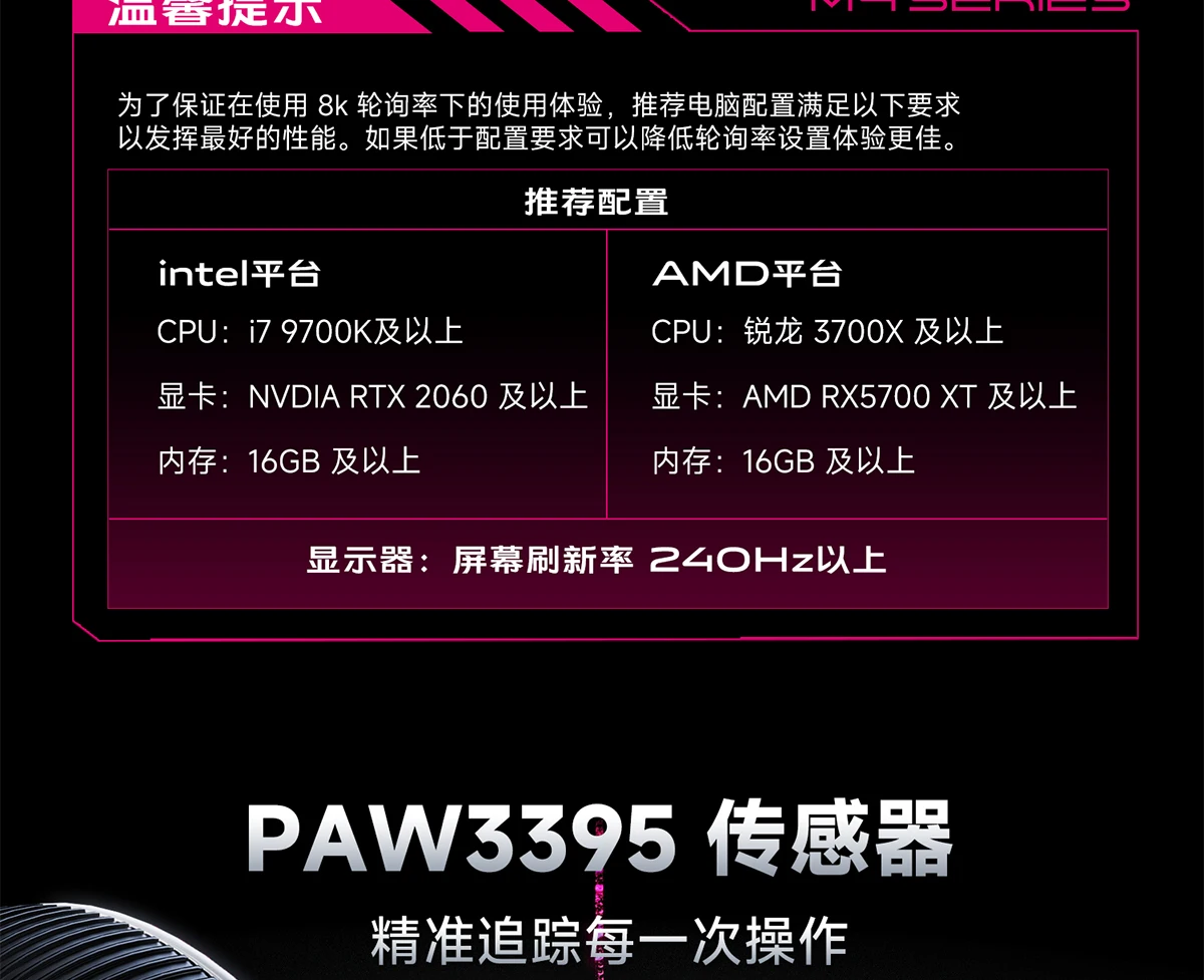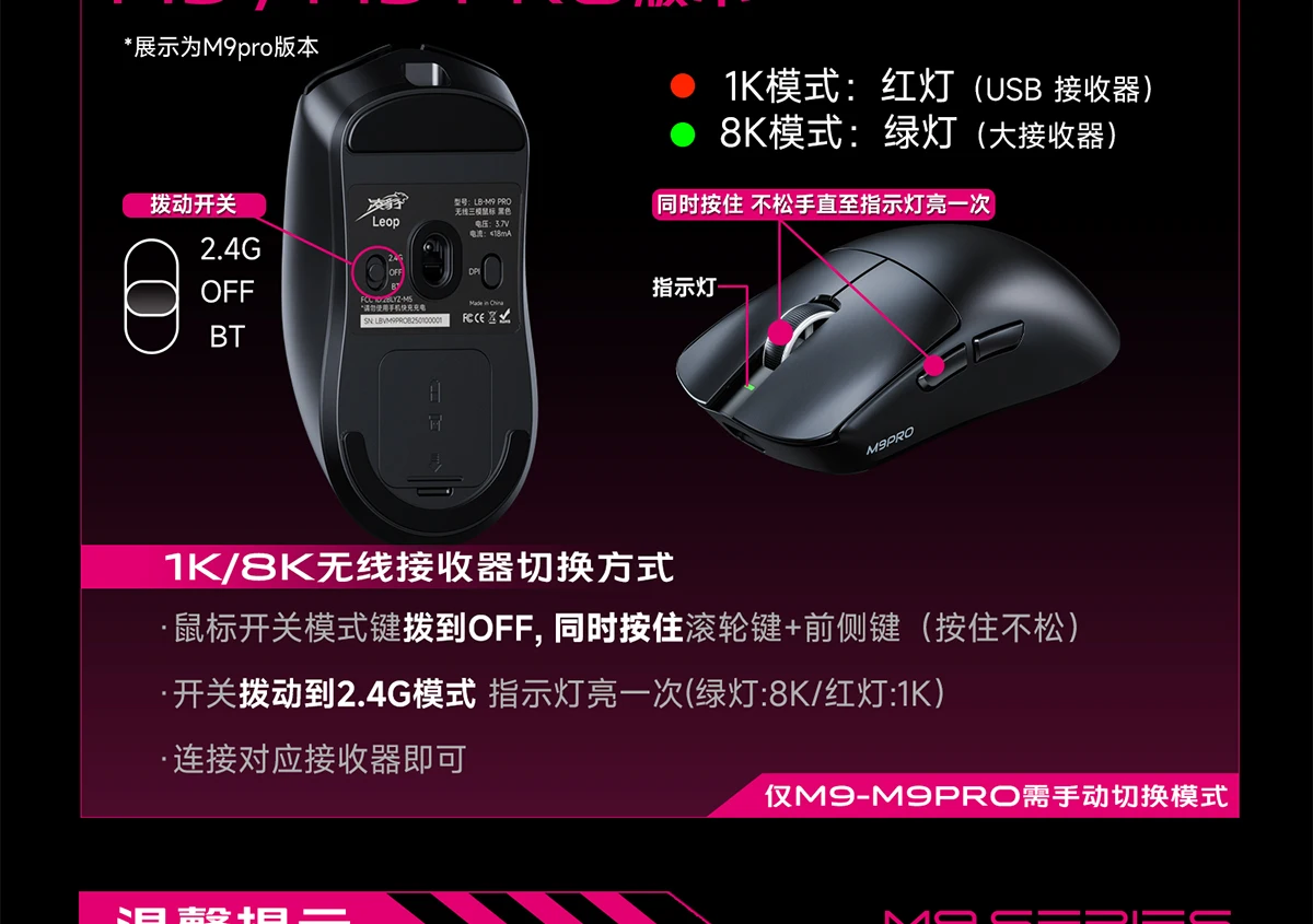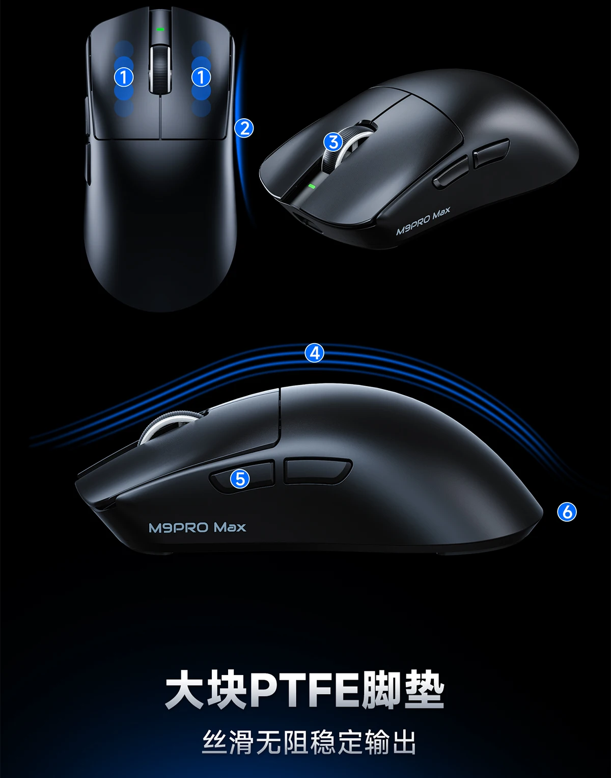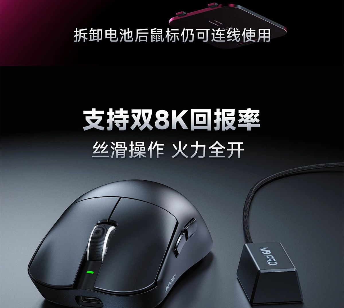 Connection methods: wired, wireless 8K, wireless 2.4G, Bluetooth