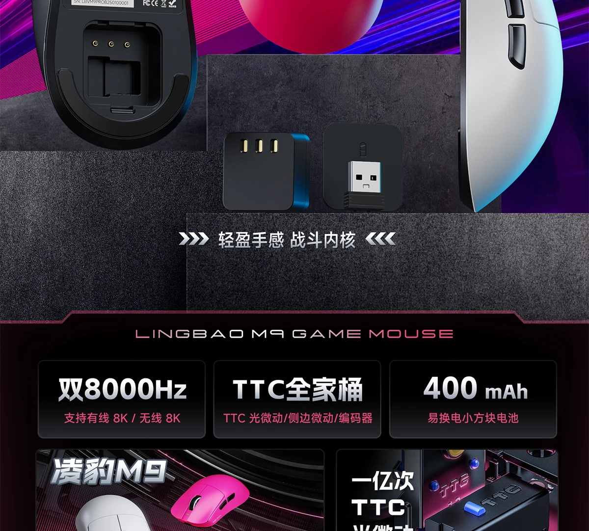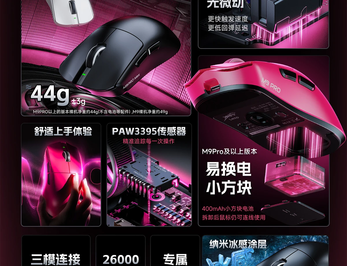 Comprar Lingbao M9 Pro Max Ratón para juegos Dual 8K Bluetooth Ratón inalámbrico de 3 modos 44g Ligero PAW3395 Ergonomía Esports Accesorio para PC