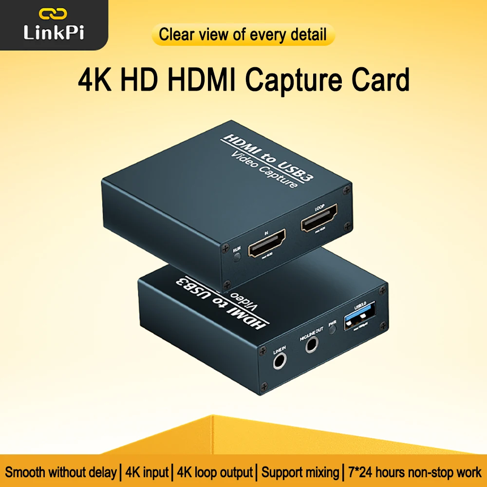 Comprar LinkPi-tarjeta de captura HDMI 4K, Colector de vídeo, juego Ring Out, transmisión en vivo, dedicado Hdmi a USB 3,0, cámara PS5, mezcla de micrófono
