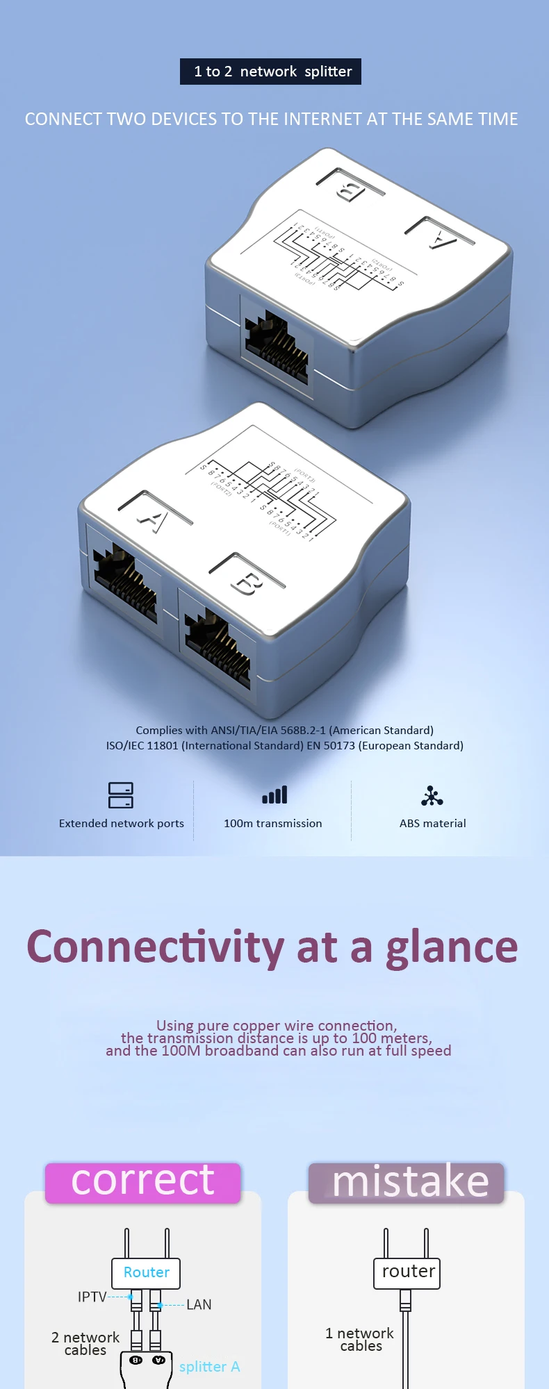 Comprar Linkwylan adaptador de conector divisor RJ45, 1 a 2, acoplador divisor Ethernet, contacto, enchufe Modular, conectar Cable Ethernet para portátil