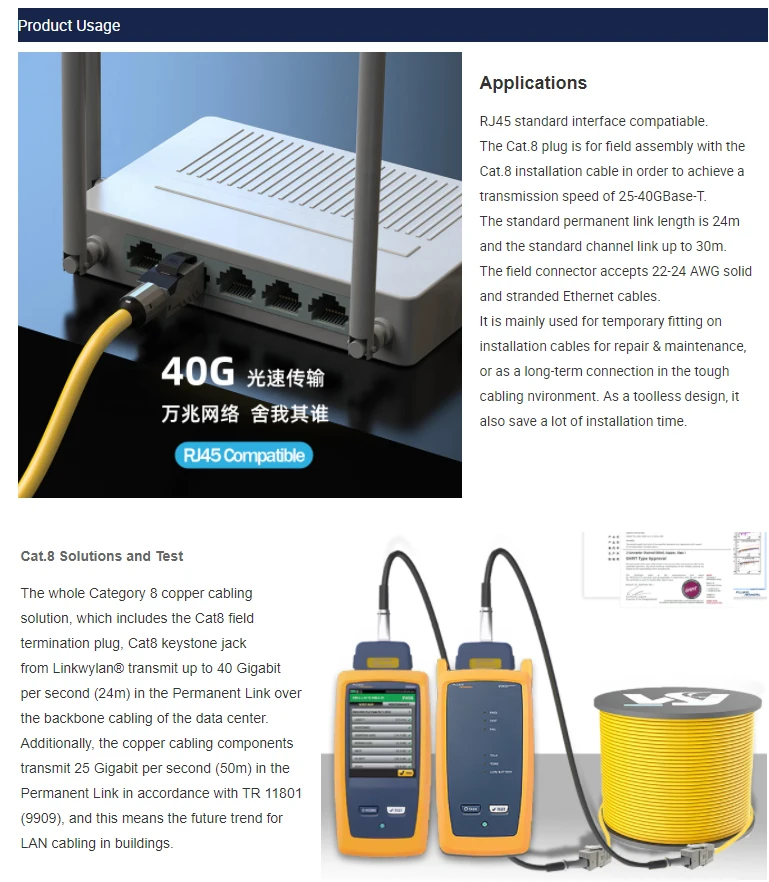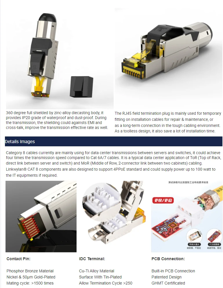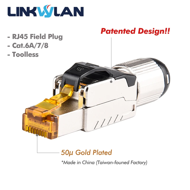 Linkwylan diseño patentado Original RJ45 Cat8 enchufe de terminación de campo blindado sin herramientas Cat7 6A conector de instalación rápida de alta fidelidad