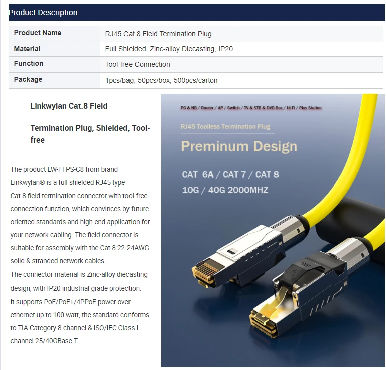 Comprar Linkwylan diseño patentado Original RJ45 Cat8 enchufe de terminación de campo blindado sin herramientas Cat7 6A conector de instalación rápida de alta fidelidad