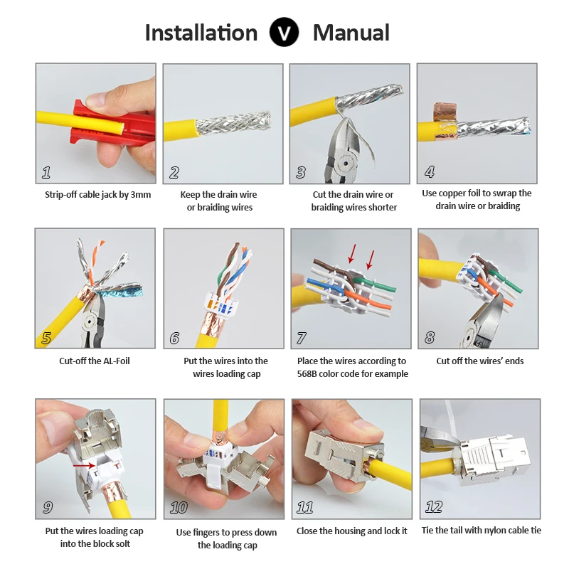 Cat.8 acepta: cable redondo de red 22-24AWG, diámetro de cobre desnudo 0,50-0, 64 mm, cable O.D6,0-9.0 mm