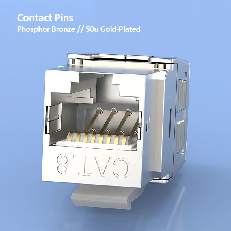 Nombre: Conector cat.8 keystone, completamente blindado, RJ45 a LSA, tipo sin herramientas