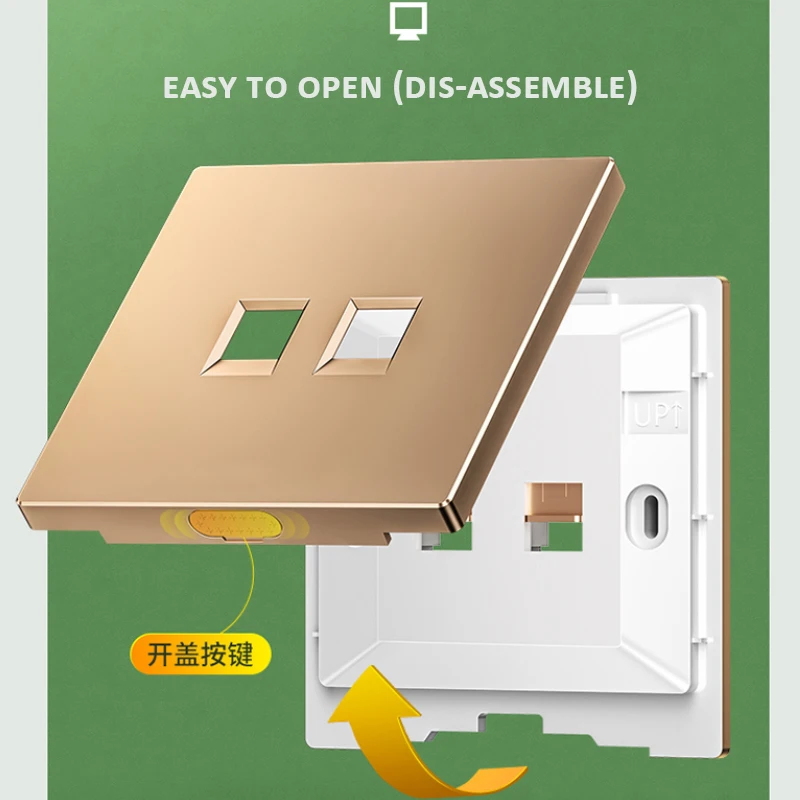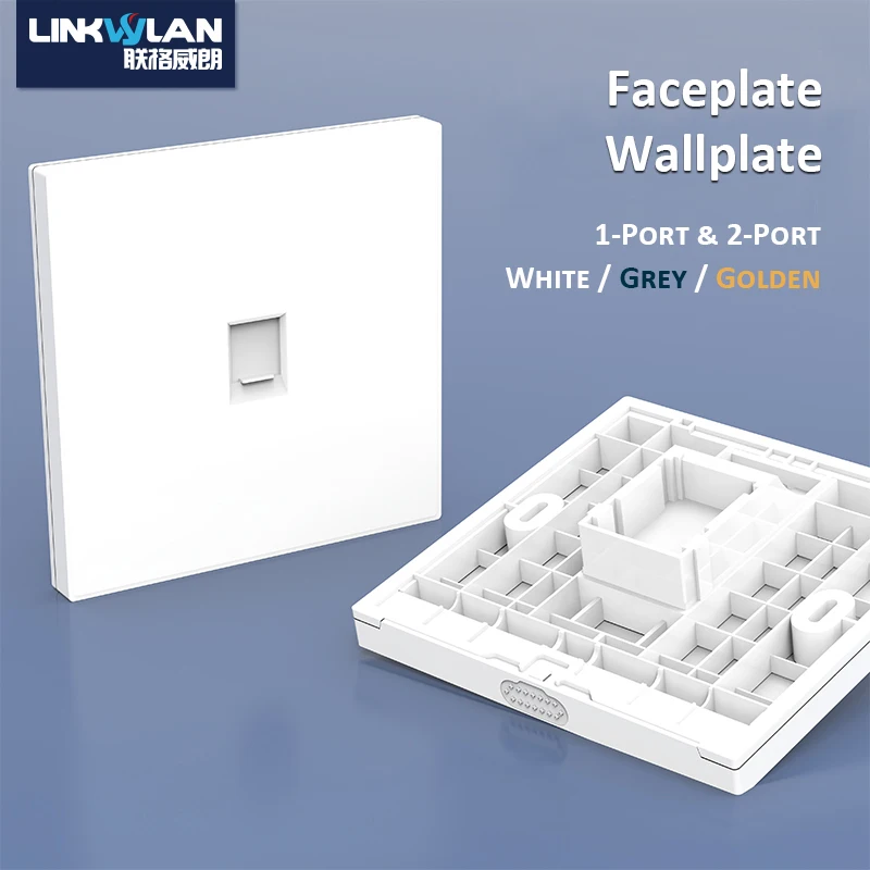 Comprar Linkwylan-placa frontal de 1 puerto, placa de pared doble de 2 puertos con obturador a prueba de polvo, montaje en superficie empotrada, 86x86mm