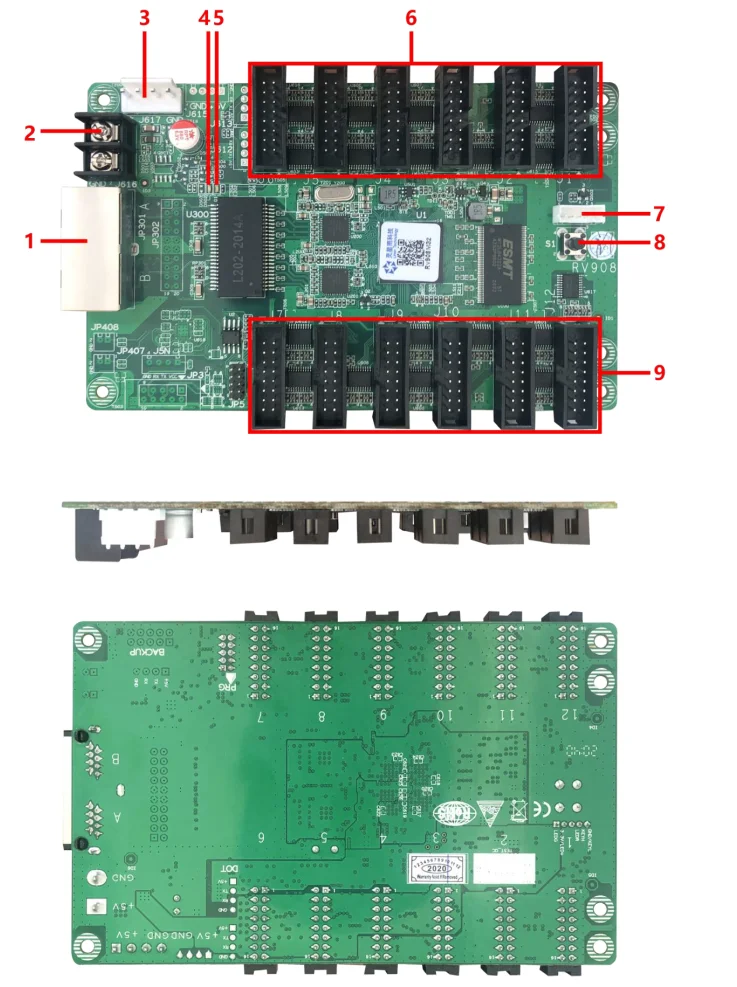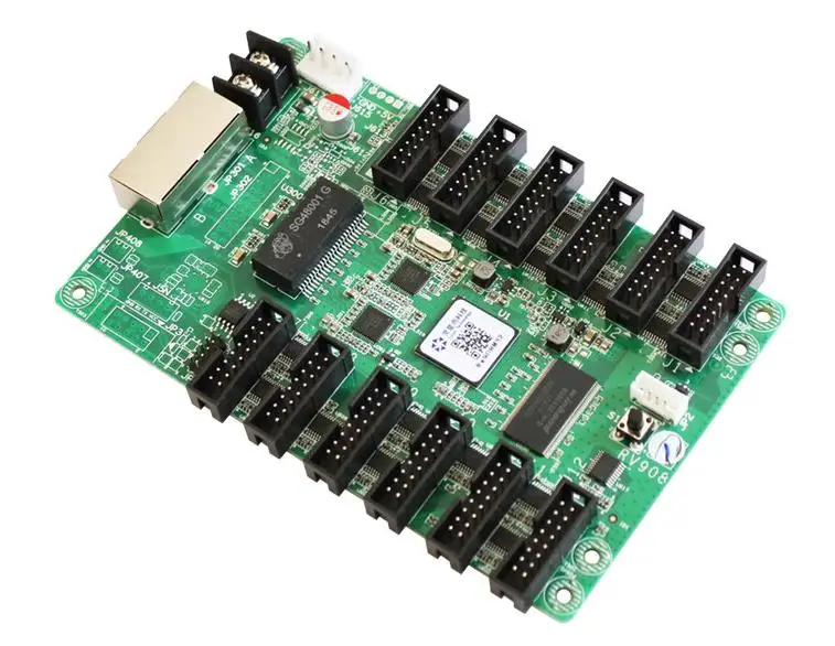 RV908M32 es un producto estandarizado para el fabricante de pantallas LED, que está integrado con 12 conectores estándar de y no requiere una tarjeta de concentrador adicional. Una tarjeta admite hasta 384*512 píxeles y hasta 24 conjuntos de datos RCG.