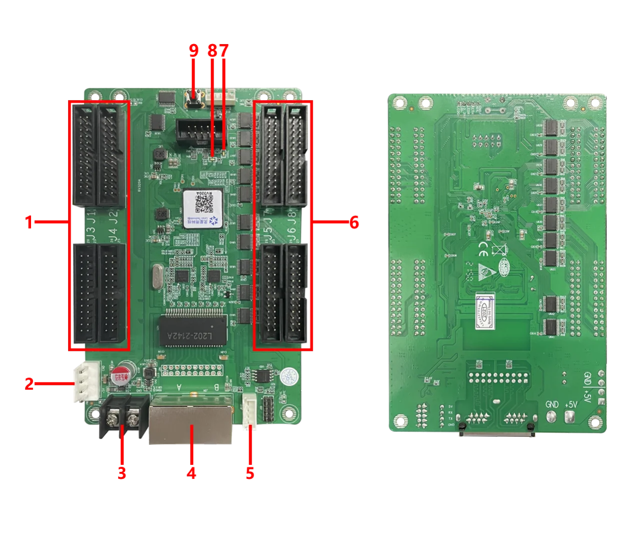 Tarjeta receptora LED Linsn RV320A integrada con 8 conectores tipo Hub320 estándar admite hasta 512*512 píxeles