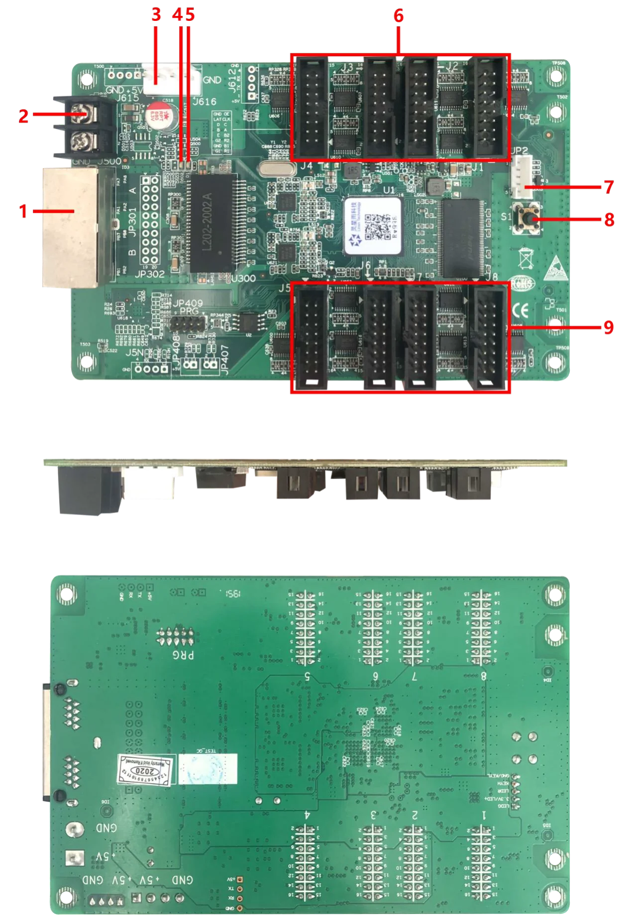 1. Una sola tarjeta puede admitir 16 grupos de modos de salida de datos RGB2. Máximo admite 256*512 (tenga en cuenta que hay valores recomendados dependiendo del diseño de los píxeles de la pantalla LED)3. Admite Calibración de brillo píxel por píxel y conversión de espacio de color de una sola tarjeta4. Admite prueba de cable de red BER5. Admite lectura de archivos de configuración6. Admite decodificación 138, decodificación serie 595, etc.7. Realiza un efecto de alta Actualización y alto nivel de grisApariencia: