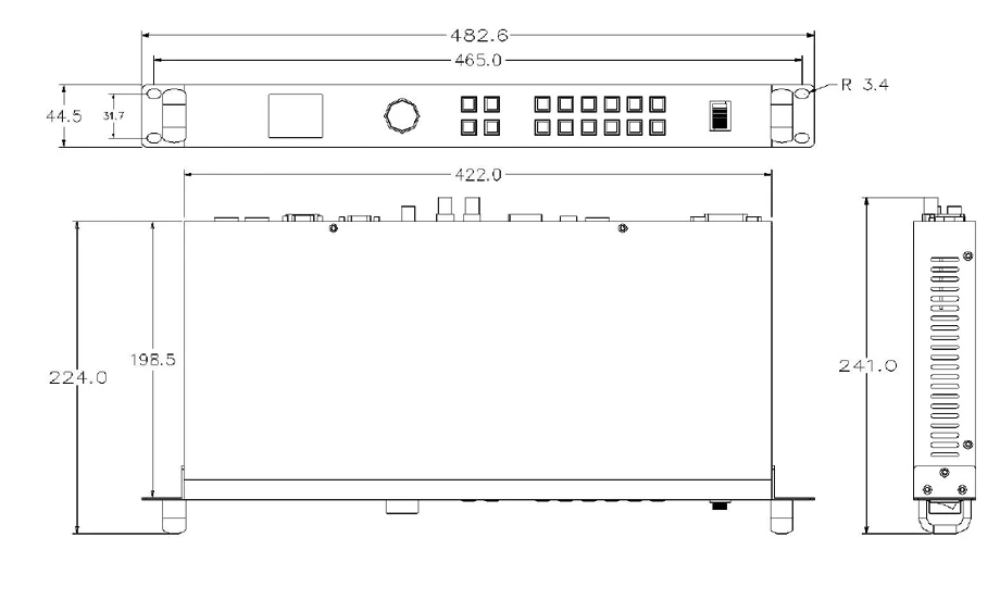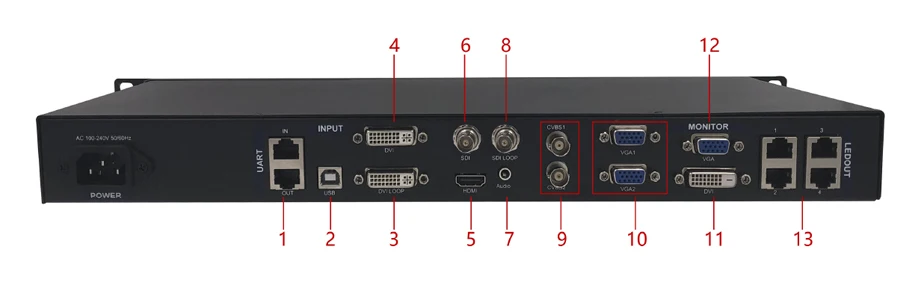 1. Procesador de vídeo dos en uno integrado con el remitente;Panel frontal