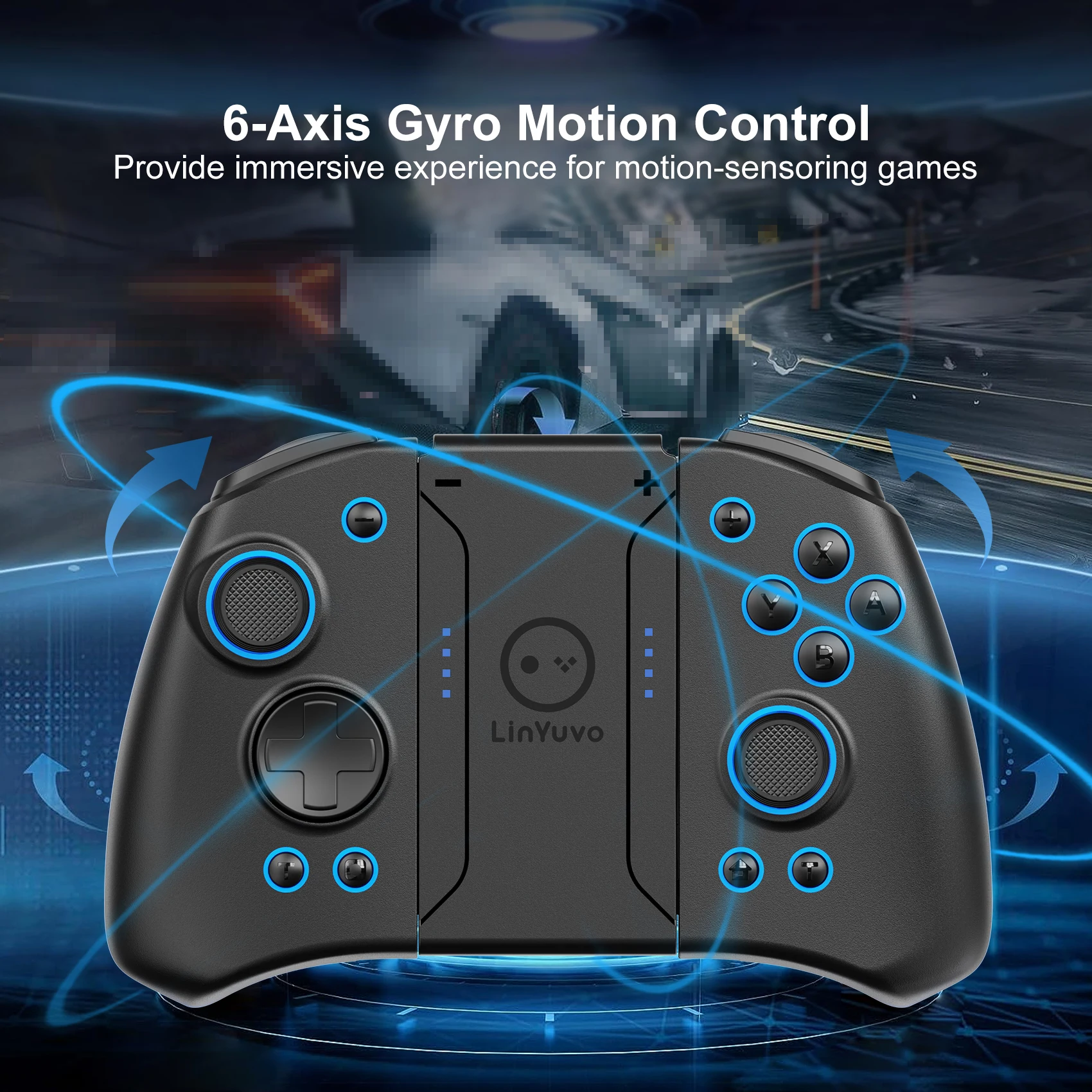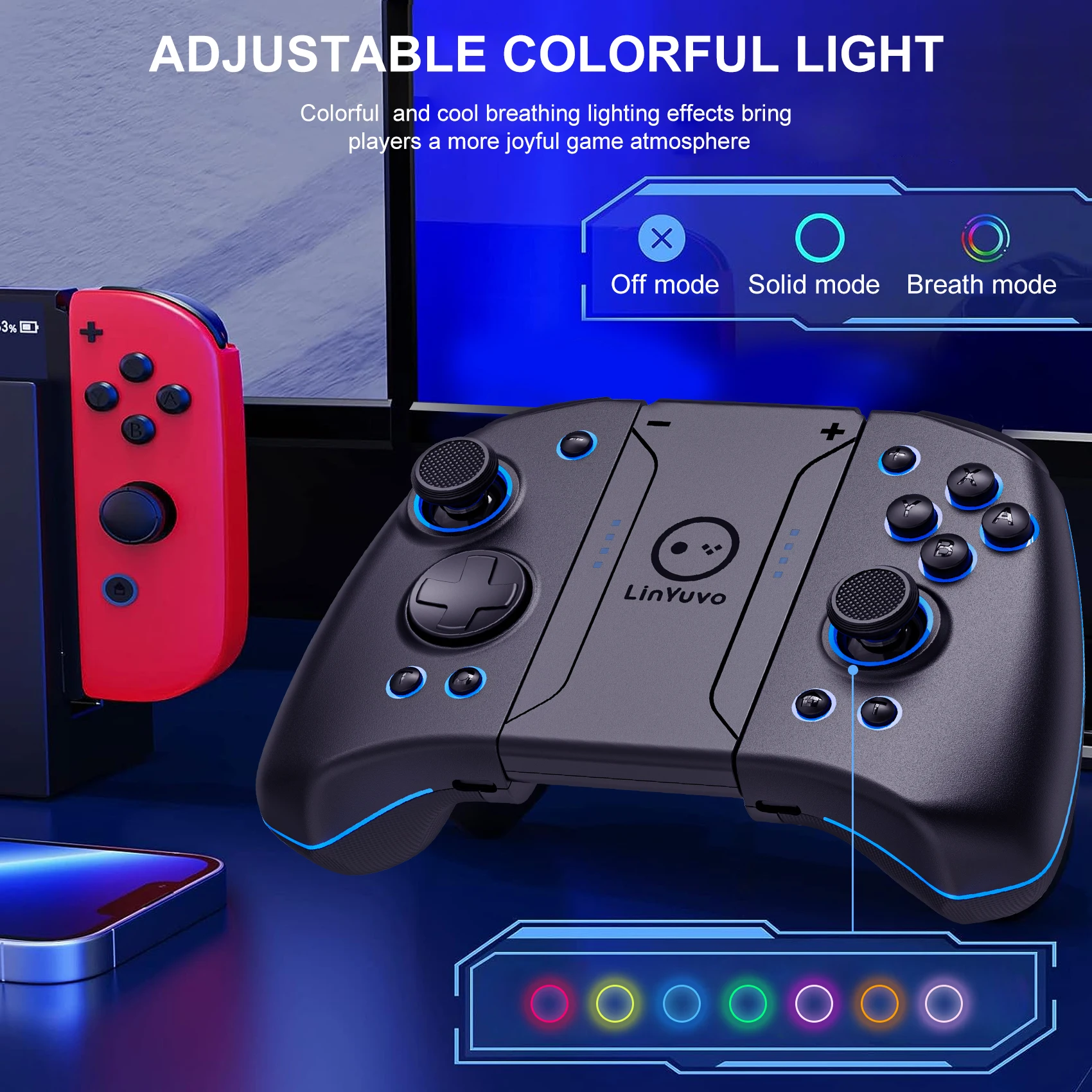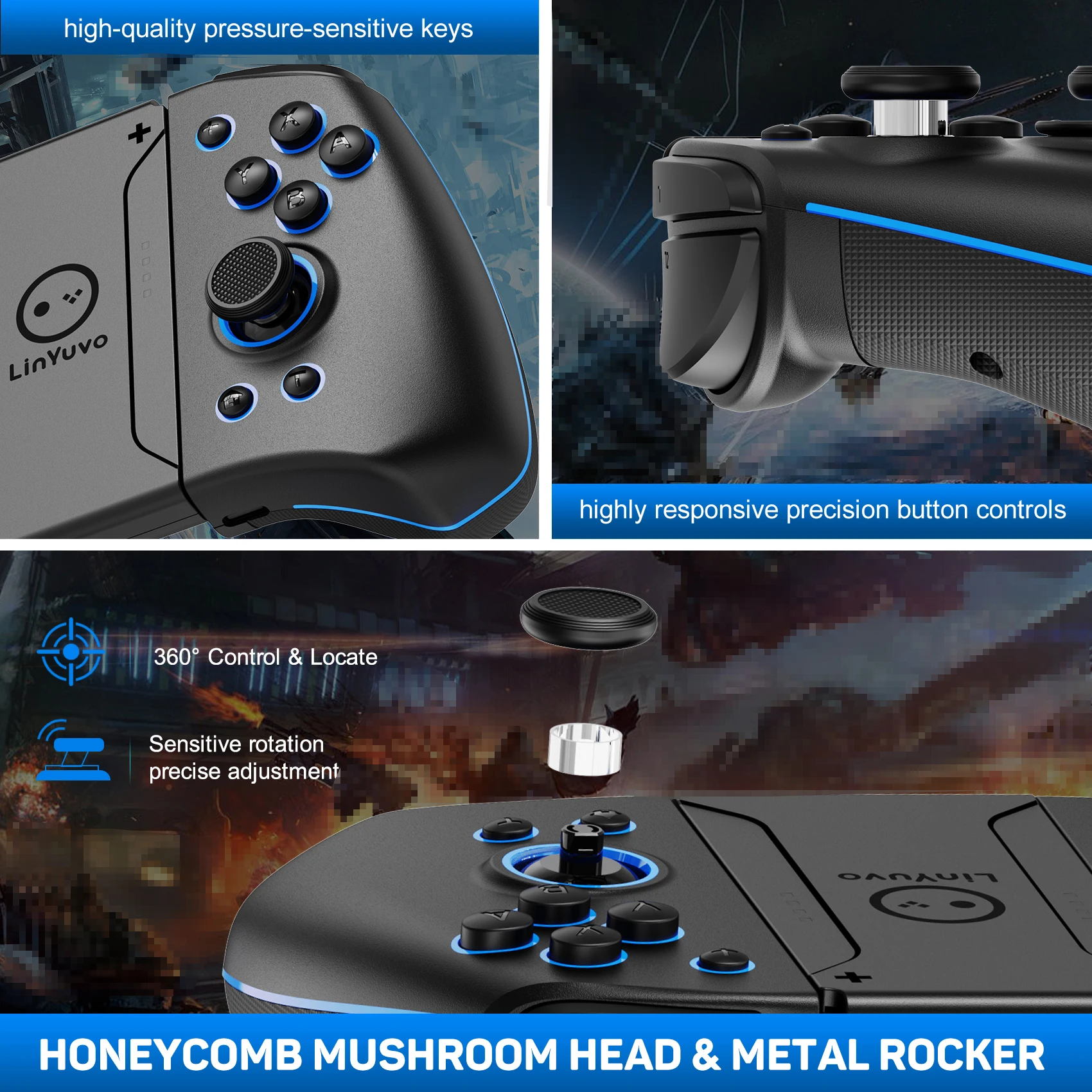 Comprar LinYuvo Joy-pad inalámbrico con luz de meteorito con botones mecánicos para interruptor/OLED, con giroscopio programable de 6 ejes, Turbo y vibración