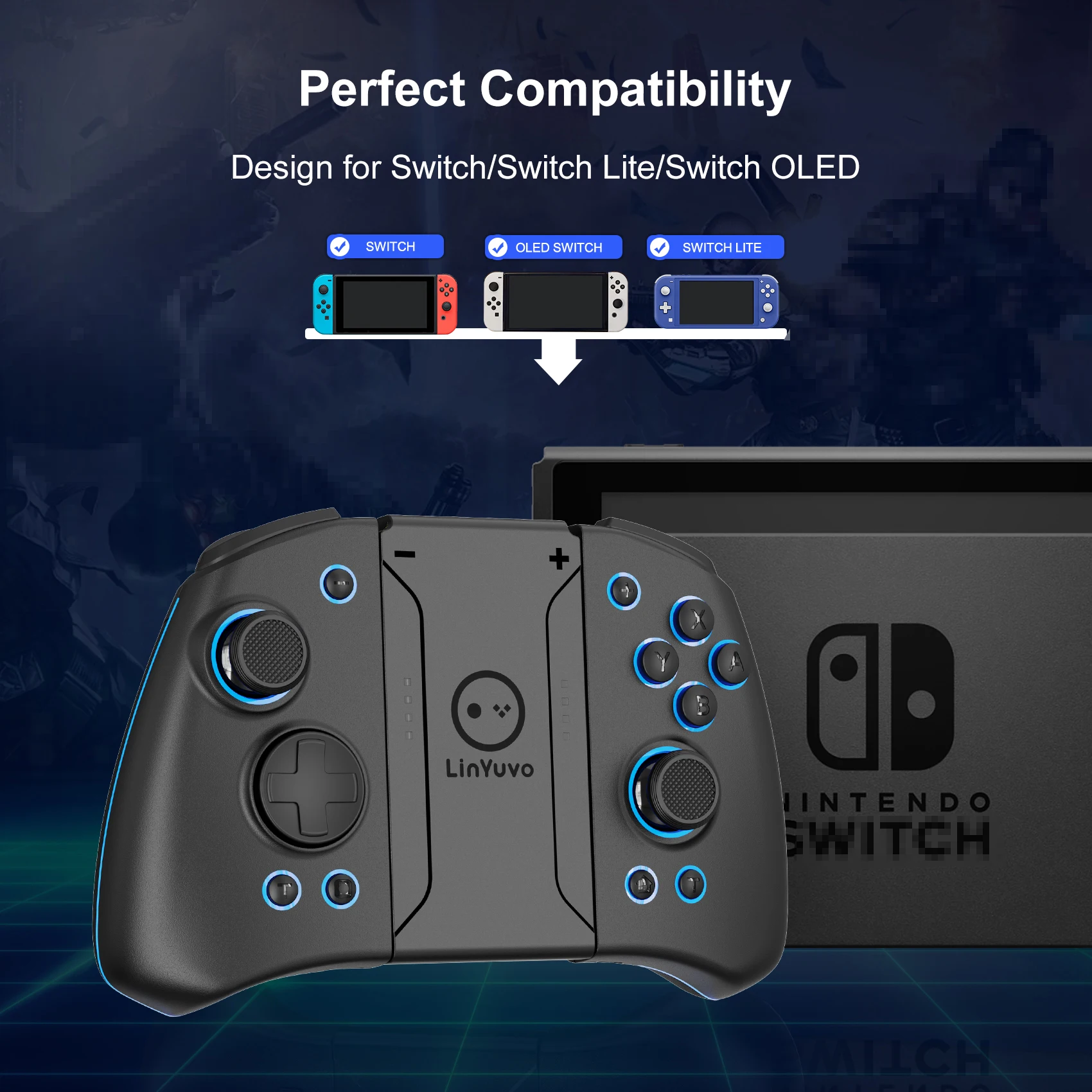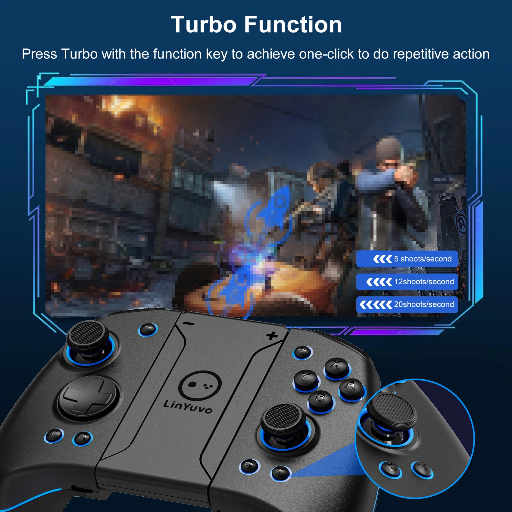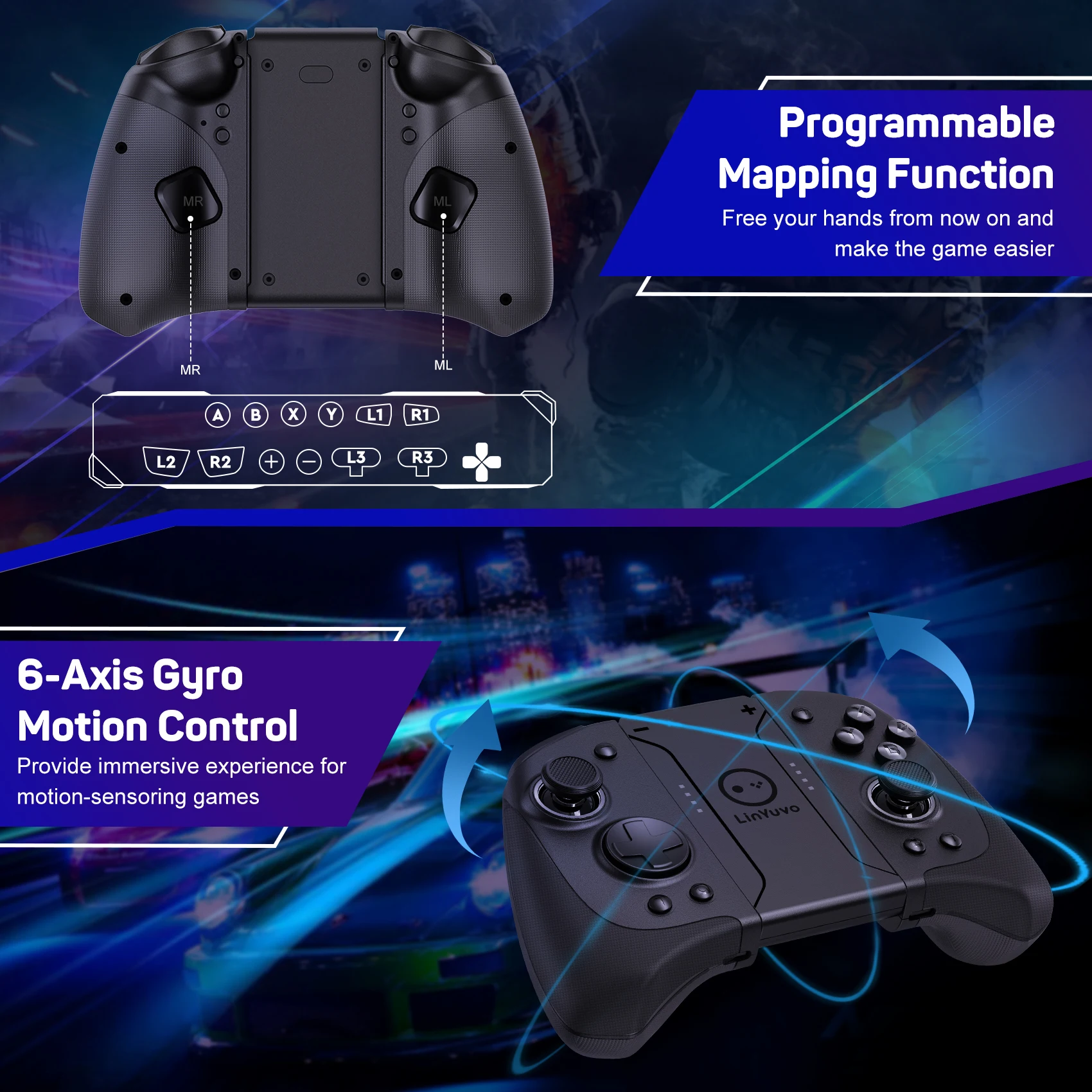 Comprar LinYuvo Joy-pad inalámbrico con luz de meteorito con botones mecánicos para interruptor/OLED, con giroscopio programable de 6 ejes, Turbo y vibración