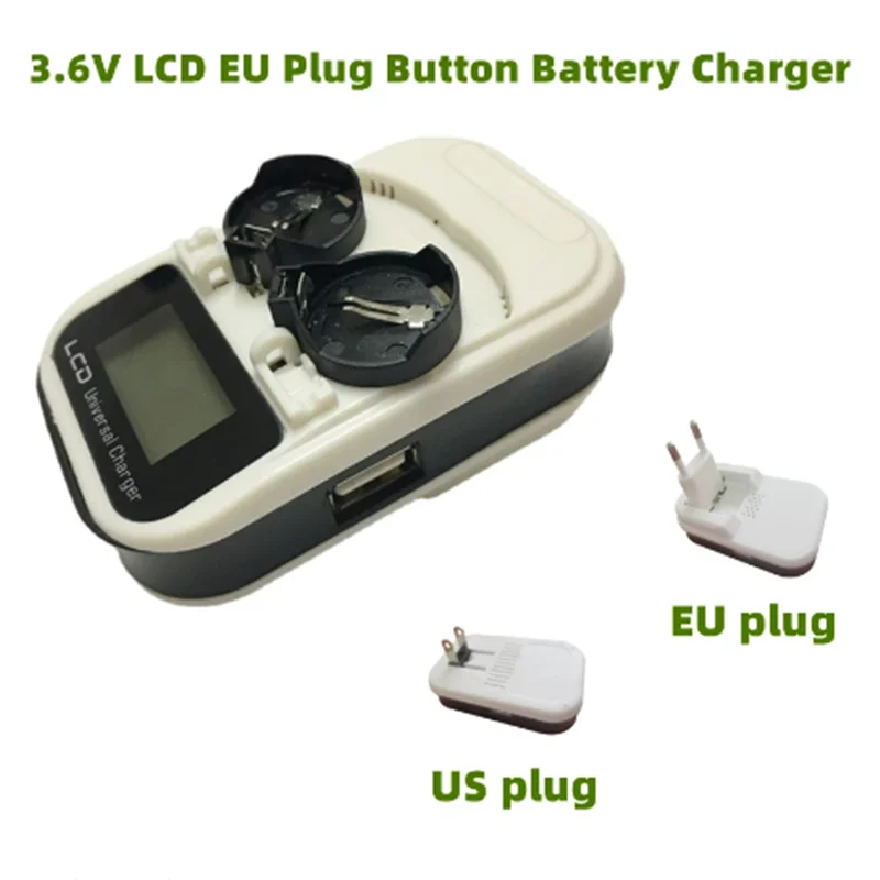Cargador de batería de botón de enchufe europeo LCD de 3,6 V para cargar