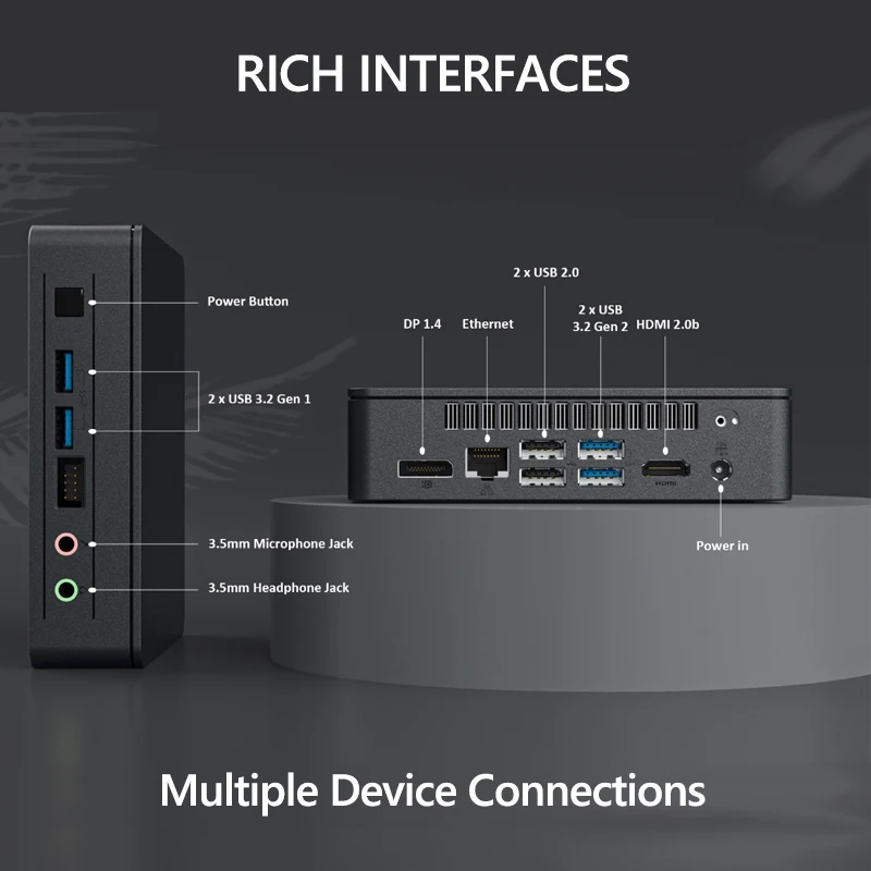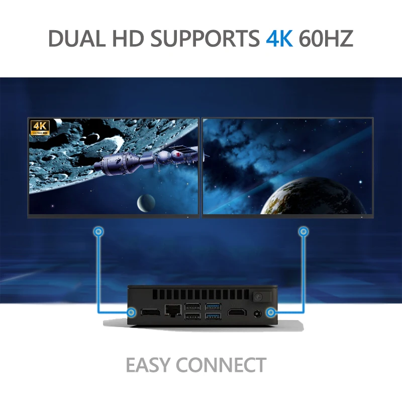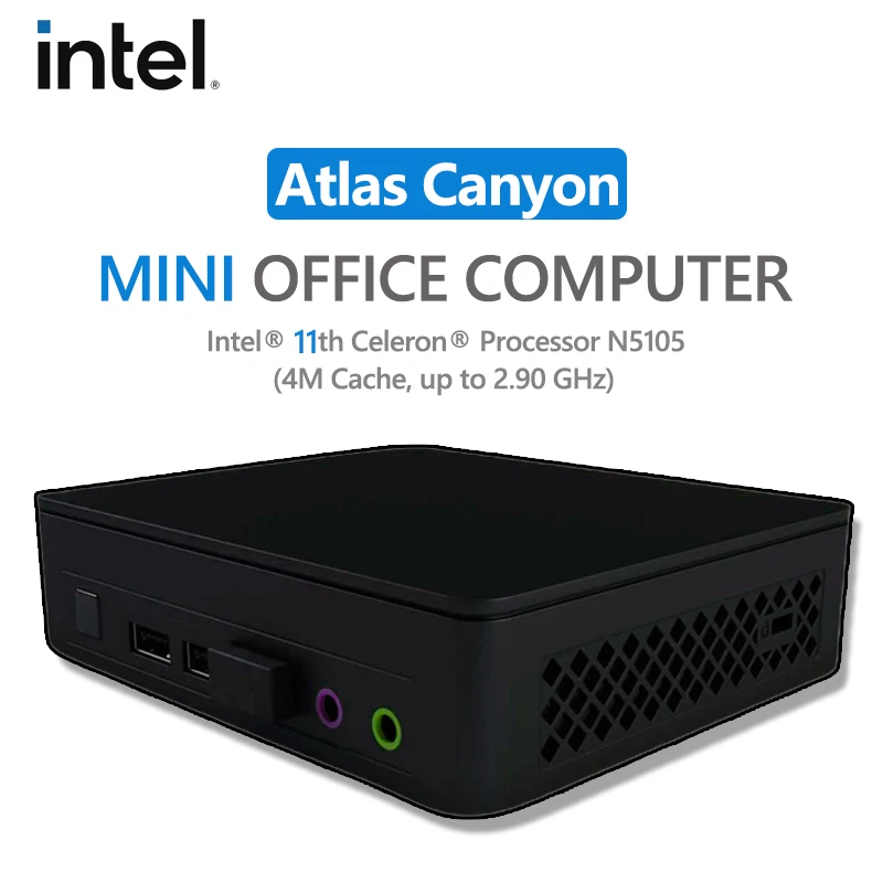Small but powerful:This compact portable Mini PC measures only 135 x 115 x 36 mm,net weight is just 1.2 pounds,With Intel Celeron N4505 (NUC11ATKC2) 2.0 GHz - 2.9 GHz burst, 2 core, 2 thread, 10W ,Intel UHD Graphics, 450 – 750 MHz burst,support 2x4K displays