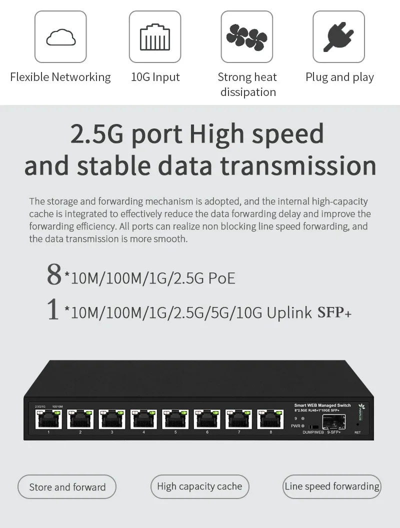 Comprar Lite gestionado 8 puertos 2.5Gbe PoE o sin interruptor con 1*10G SFP + Uplink