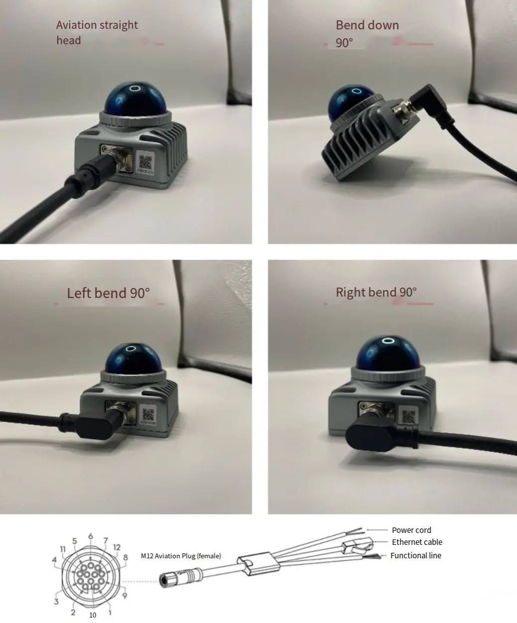 Livox Uno se divide en dos cables M12 enchufe de aviación codo de cabeza recta para Radar Mid360 Hap (TX) se puede personalizar