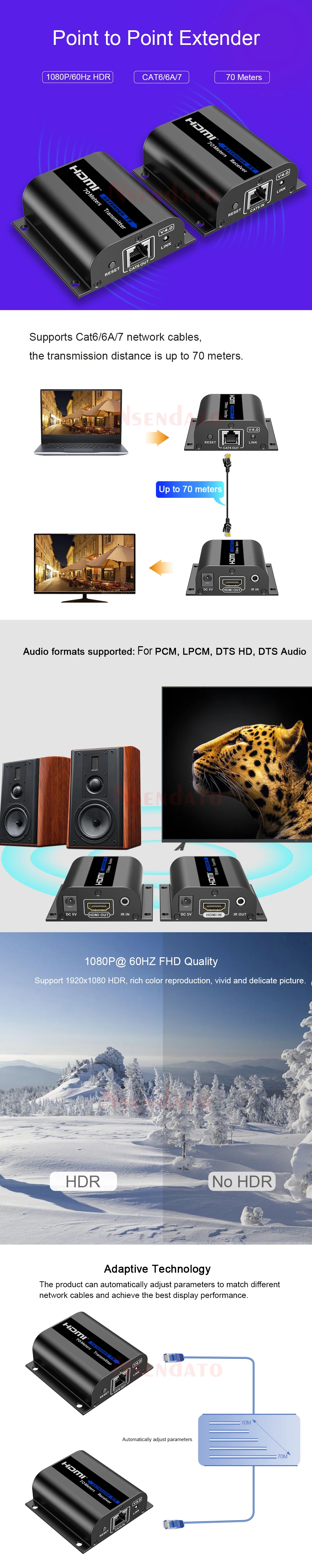 Comprar LKV372AE-4.0 HDR HDMI extensor sobre RJ45 Cat 6 6A 70m HDMI transmisor de vídeo inalámbrico receptor para PS4 Monitor HDTV portátil