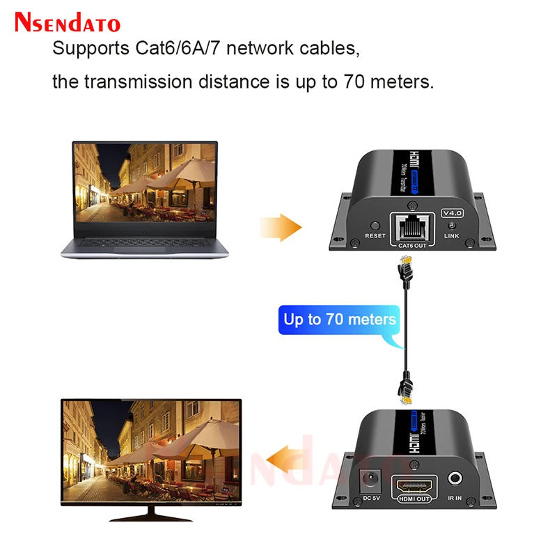 Comprar LKV372AE-4.0 HDR HDMI extensor sobre RJ45 Cat 6 6A 70m HDMI transmisor de vídeo inalámbrico receptor para PS4 Monitor HDTV portátil