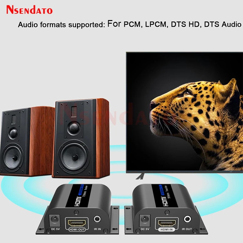 Descripción:Este extensor HDMI incluye una unidad transmisora y una unidad receptora, permite transmitir la señal HDMI hasta 70 metros con una resolución de 1080p usando un cable de red Cat6/6A/7.Adopta una configuración de conexión punto a punto, admite paso de infrarrojosCaracterísticas1.Zero latencia.2. Admite una resolución de hasta 1080p@60Hz.3. Admite cables de red Cat6/6A/7, la distancia de transmisión es de hasta 70 metros.4. Admite la función de reducción IR (20 ~ 60 KHz).5.Soporte 1080p HDR10 (YUV4:4:4:4).6. Admite passthrough EDID.7.Formatos de audio compatibles: para PCM, LPCM, DTS HD, DTS Audio8.Ajusta automáticamente los parámetros para que coincidan con diferentes cables de red yLogre el mejor rendimiento de visualización.9. Admite protección contra rayos, protección contra sobretensiones y protección ESD.10.Rango de frecuencia de retorno de IR20 ~ 60 KHz11: Admite EDID a través dePaquete:TX+RXManualExtensor de infrarrojos