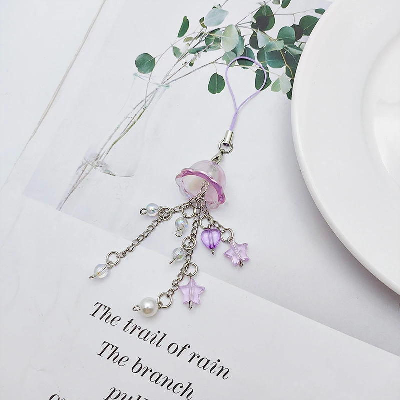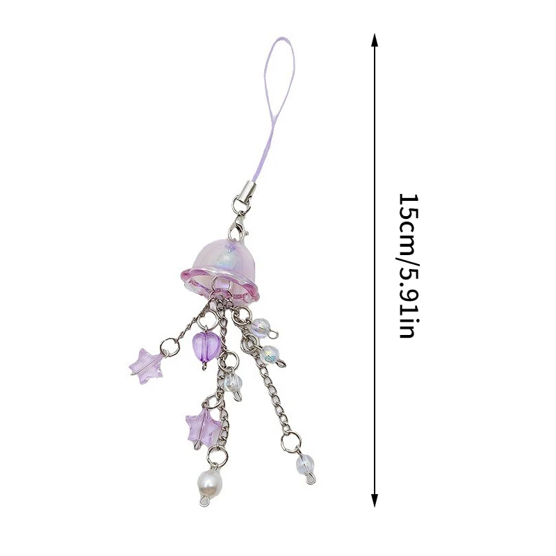 Comprar Llavero con colgante de flecos de medusas para teléfono móvil, accesorios bonitos, cadena con flecos de dibujos animados, correa para teléfono