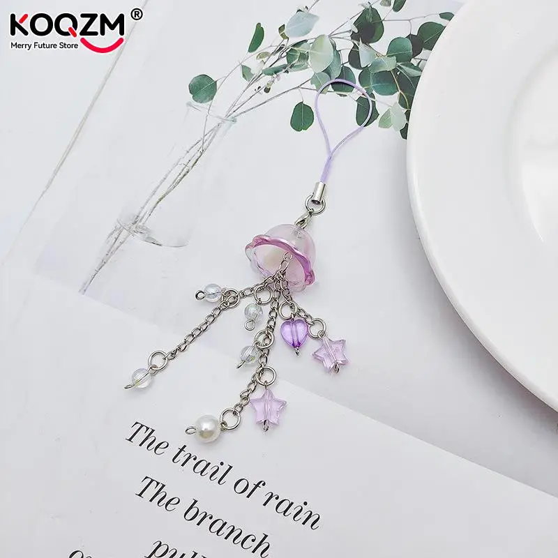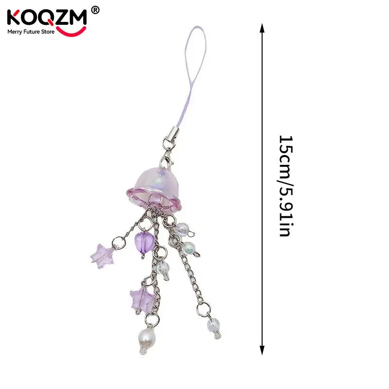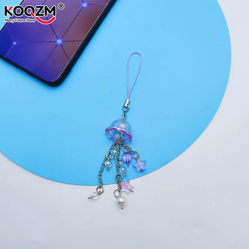 Comprar Llavero con colgante de flecos de medusas para teléfono móvil, accesorios bonitos, cadena con flecos de dibujos animados, correa para teléfono