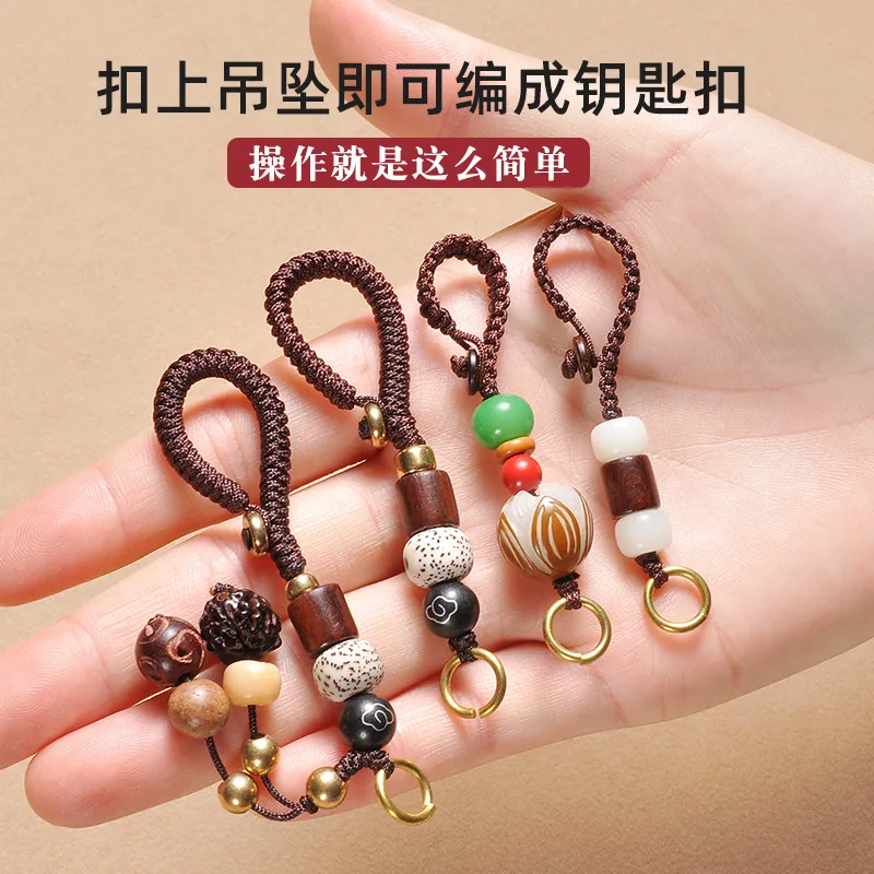 Comprar LLavero de cuerda tejida Vintage hecho a mano, colgante de llave DIY, patrón de nube auspiciosa, joyería étnica de la suerte con cuentas de madera negra