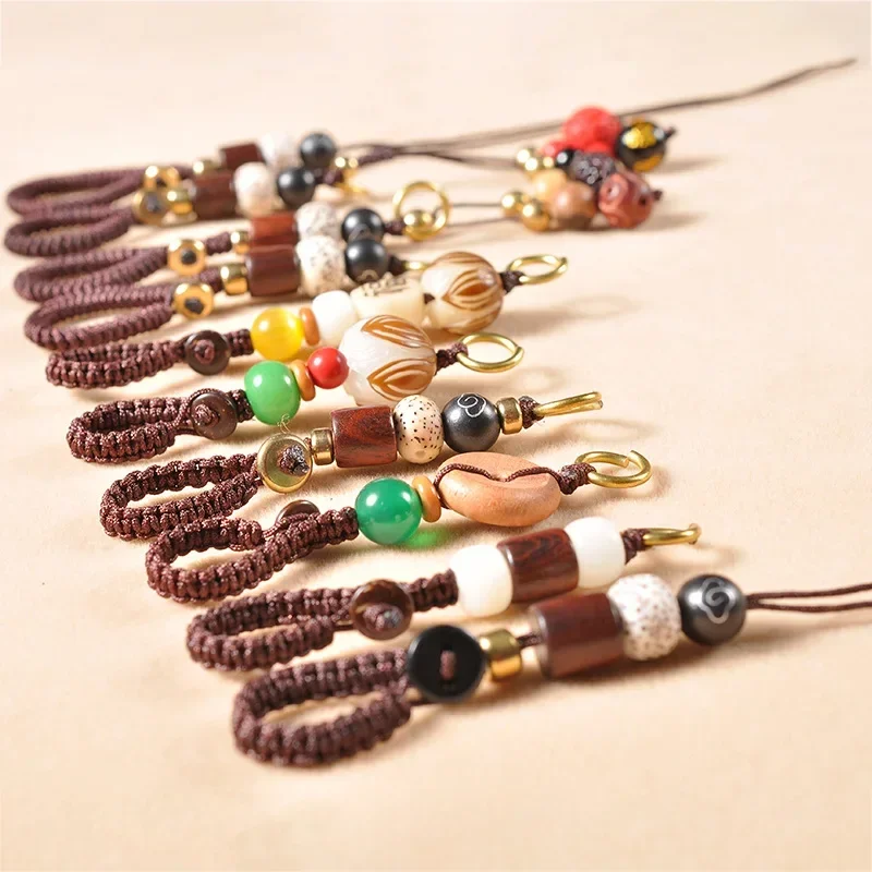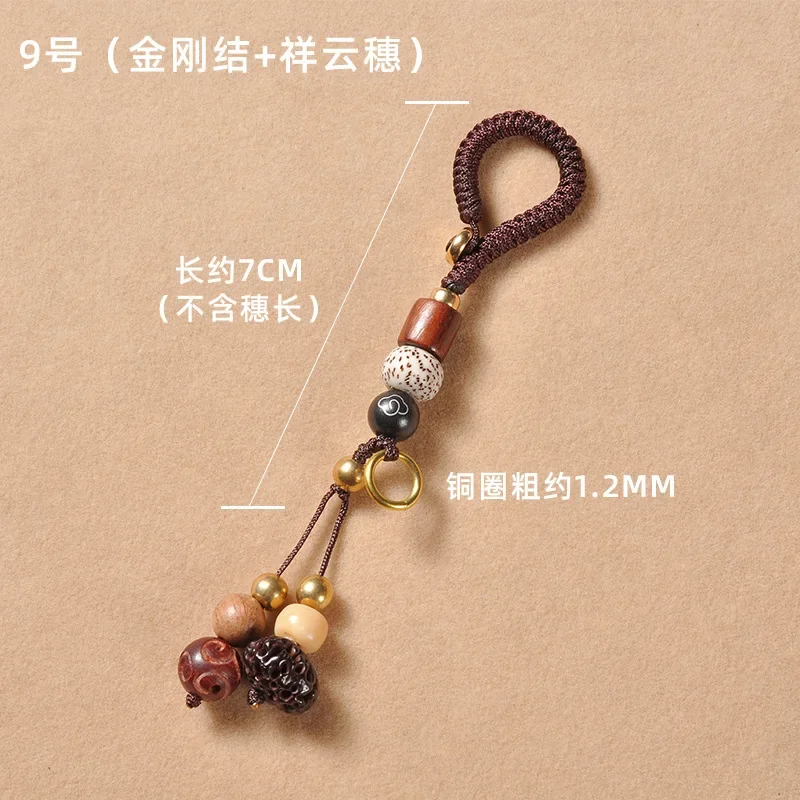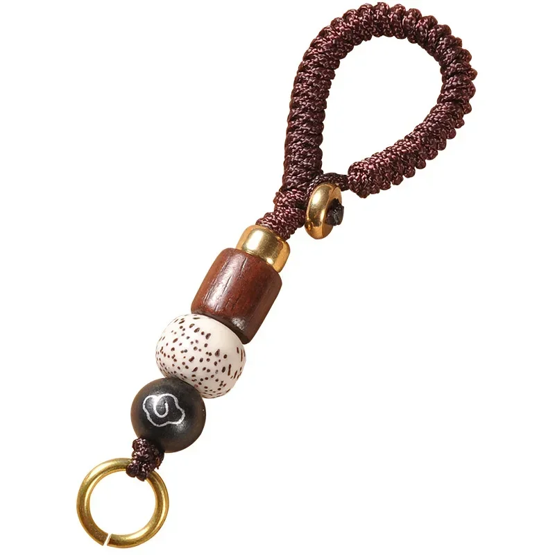 Comprar LLavero de cuerda tejida Vintage hecho a mano, colgante de llave DIY, patrón de nube auspiciosa, joyería étnica de la suerte con cuentas de madera negra