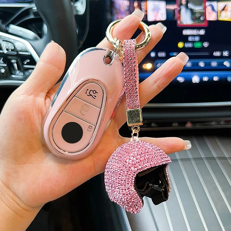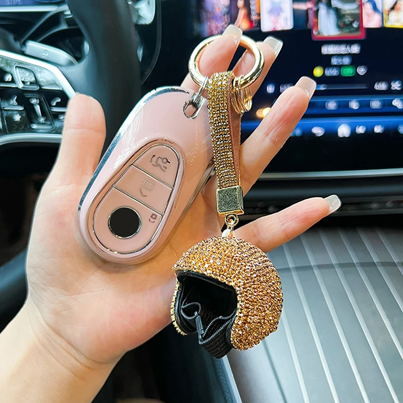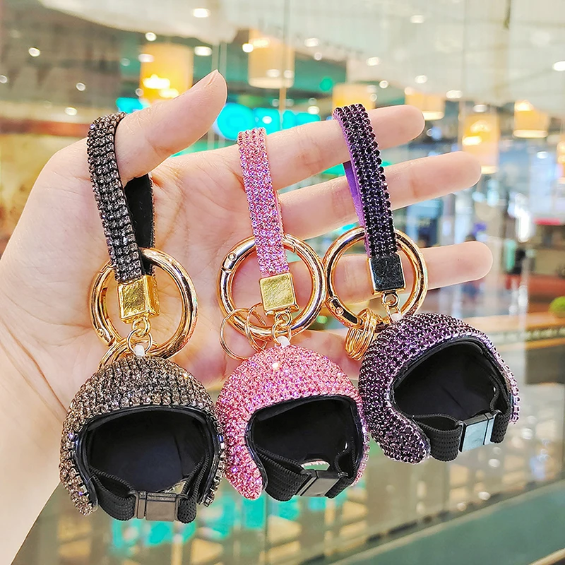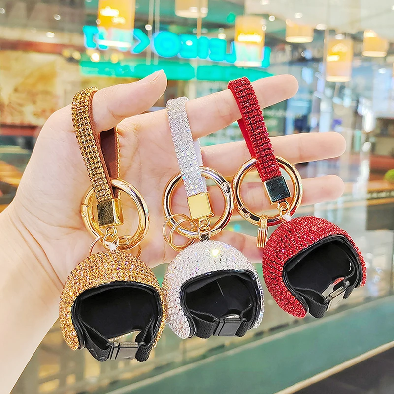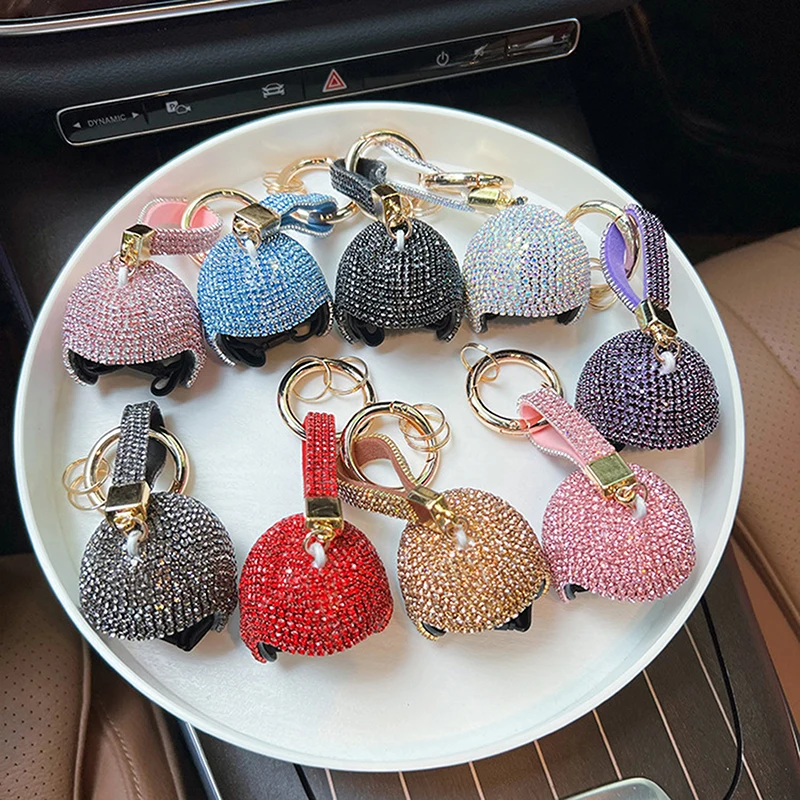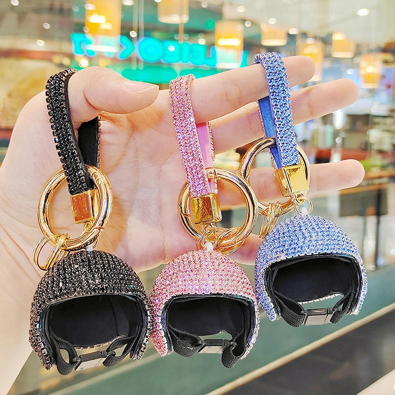 Comprar LLavero de diamante completo exquisito, colgante colorido para casco de motocicleta, bricolaje, muñeca, sombrero duro, llave de coche, colgante, BILLETERA, accesorios