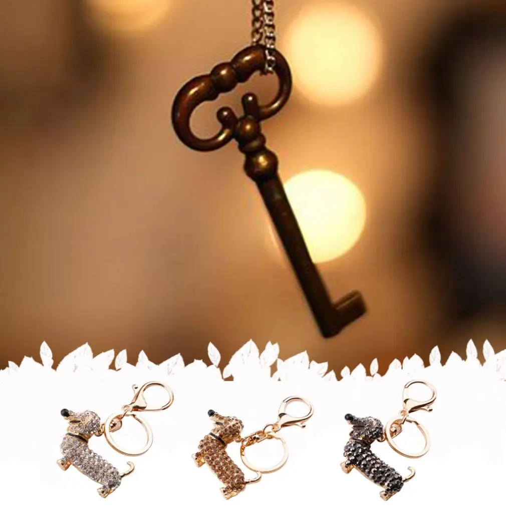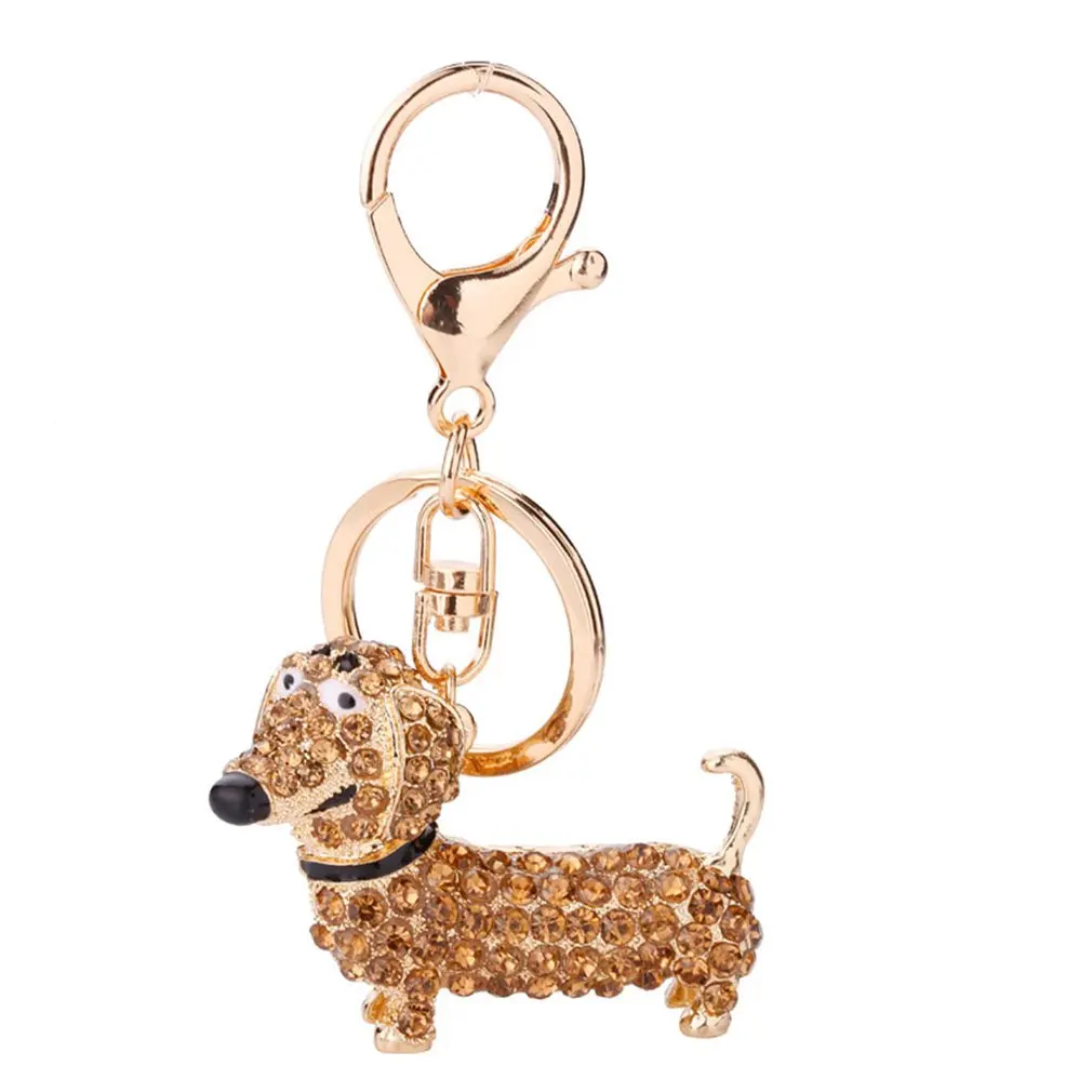 Comprar Llavero con diseño de cachorro de perro salchicha y diamantes de imitación, bonito llavero de coche, decoración colgante, regalo exquisito para novia, una variedad de estilos