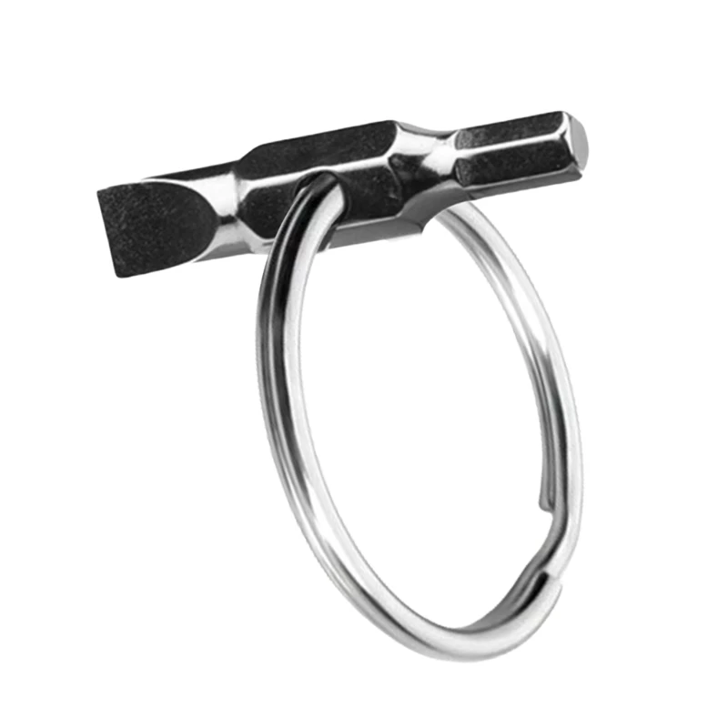 En un lado hay una llave hexagonal de 5/32 pulgadas (4 mm), adecuada para los tornillos de instalación más utilizados; del otro lado hay un destornillador básico de cabeza plana, que puede apretar o aflojar la mayoría de los tornillos ranurados.