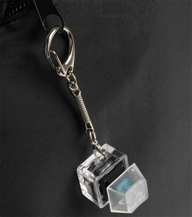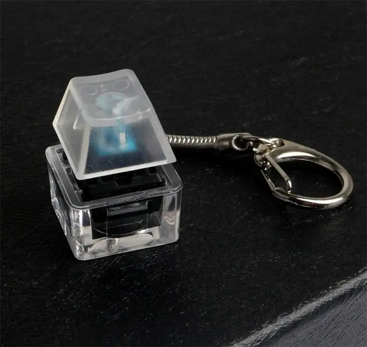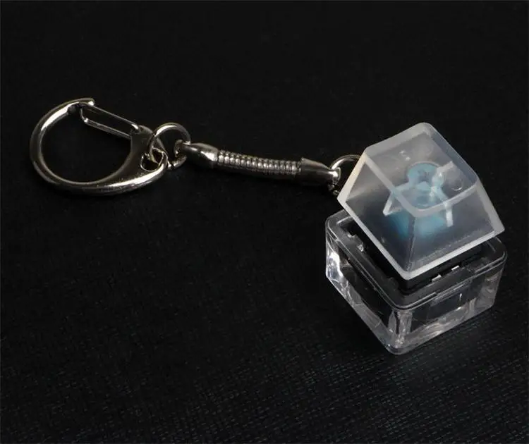 Base transparente + tecla transparente + llavero de metal, pequeño y exquisito, fácil de llevar