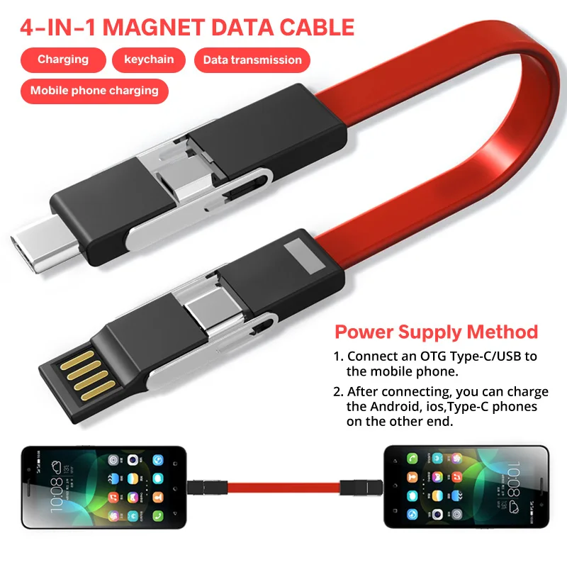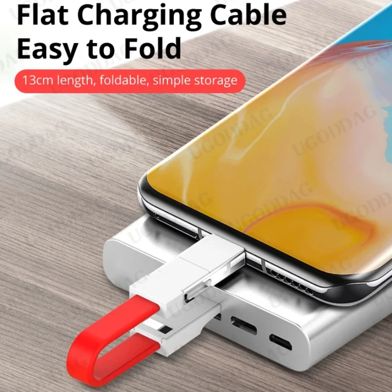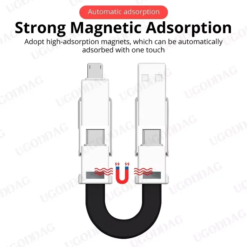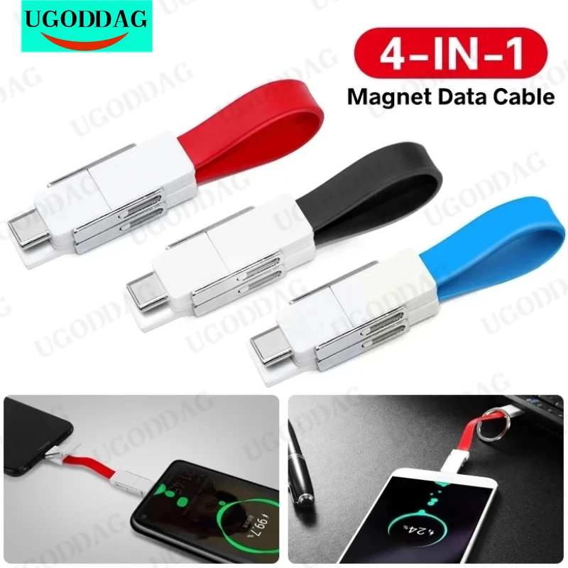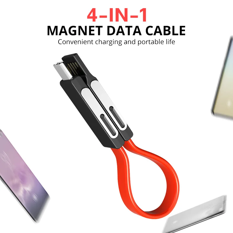Llavero magnético 4 en 1, Cable USB, Cable de carga Micro USB, USB tipo C, 8 pines, Cable de datos de Banco de energía corto portátil para iPhone Android