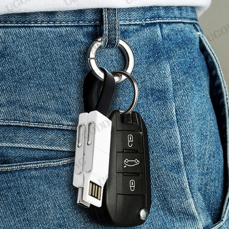Comprar Llavero magnético 4 en 1, Cable USB Micro USB, Cable de carga USB tipo C de 8 pines, Cable de datos de Banco de energía corto portátil para iPhone y Android