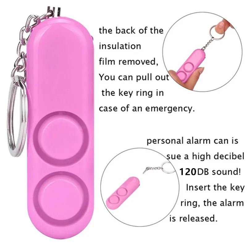 'Comprar LLavero de seguridad para el hogar, dispositivo Anti-rape de defensa Personal de 120dB, altavoces duales, alarma fuerte, alerta de ataque de Panic, colgante de bolsa