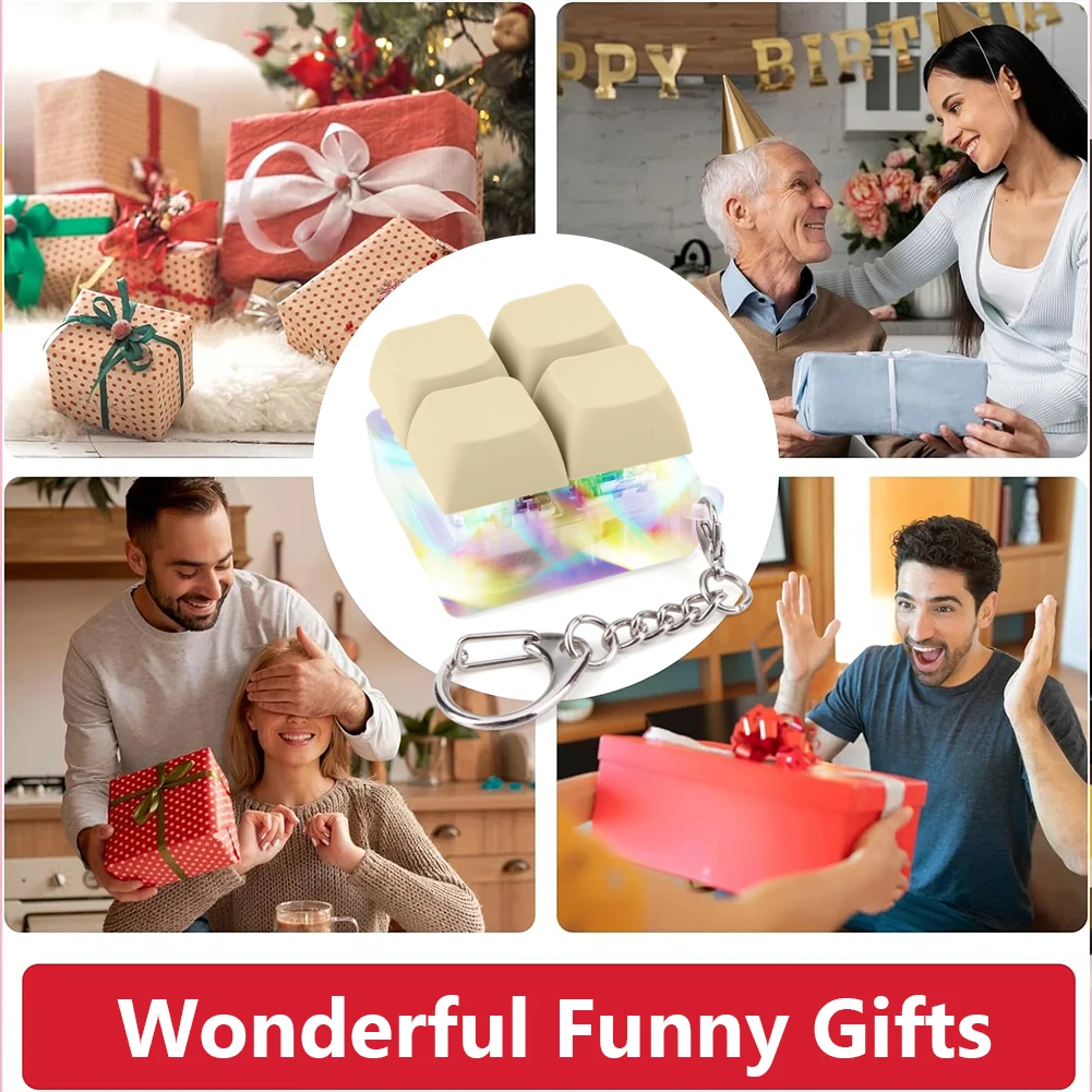 5.Idea de regalo perfecta:El llavero antiestrés con teclado mecánico brillante es un excelente regalo para cualquiera que busque mejorar la concentración y reducir el estrés.Ideal para entusiastas del teclado y un gran regalo festivo para familiares y amigos en el trabajo, este juguete de descompresión multifuncional seguramente deleitará.
