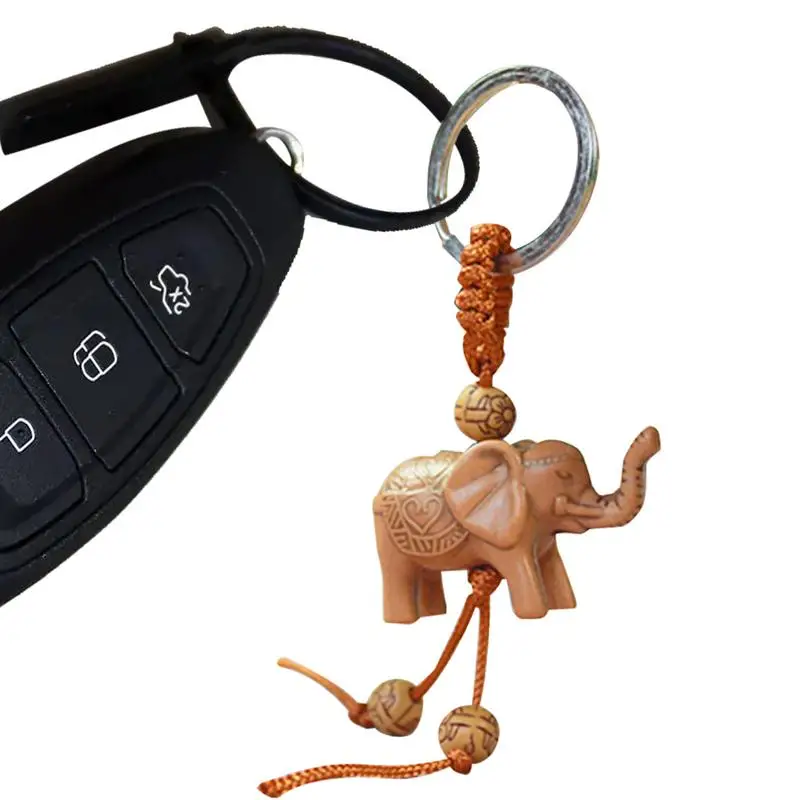 Este pequeño y adorable llavero presenta un diseño de elefante intrincadamente tallado y está hecho de material de alta calidad.