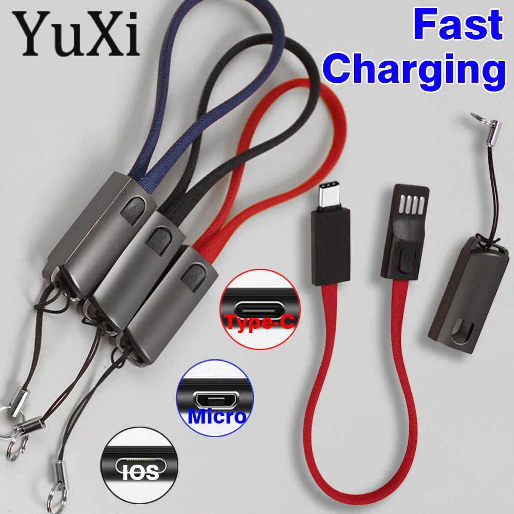 Comprar LLavero tipo C, Cable Micro USB, Cable de datos corto portátil, carga rápida para Xiaomi, Redmi, Huawei, IPHONE, USB C, 1 ud.