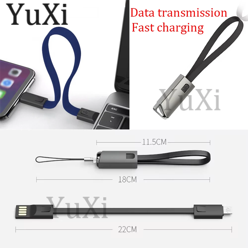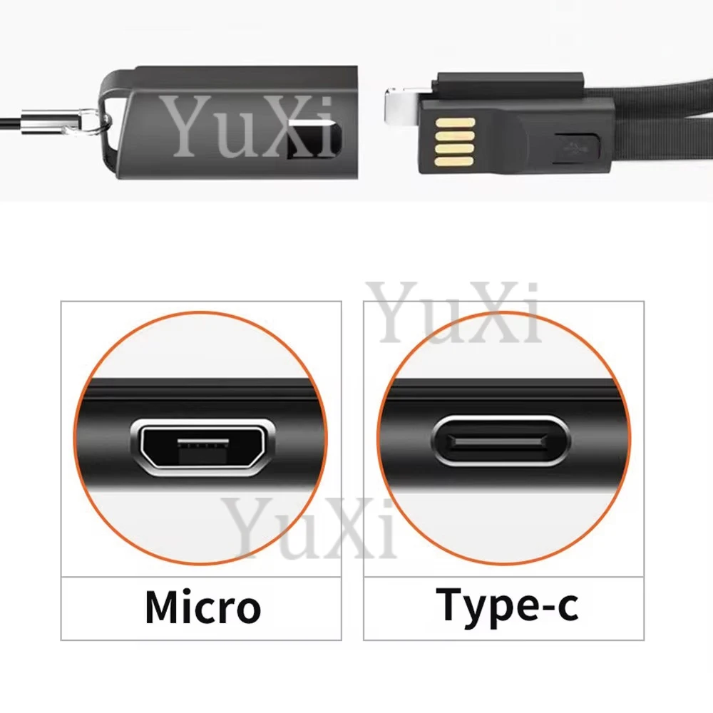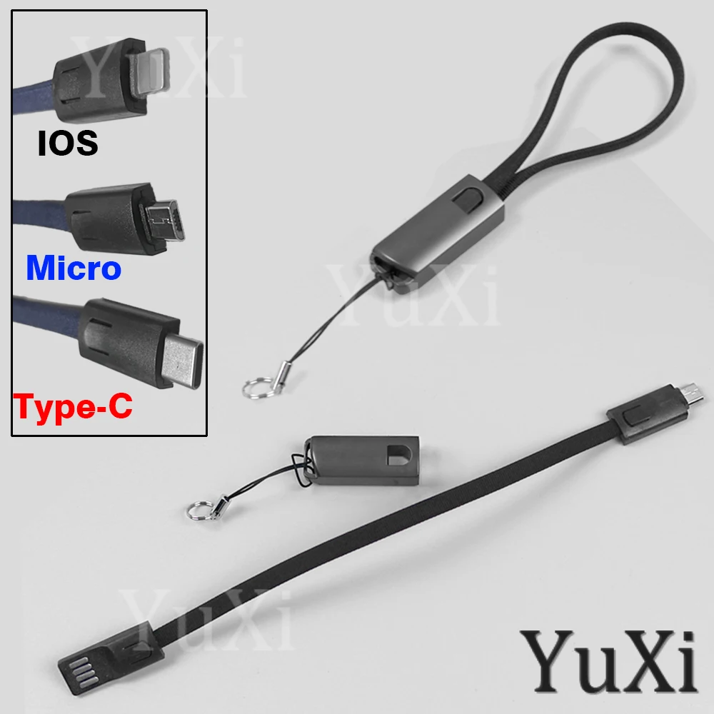 1Pc Keychain Type-C Micro USB Cable Portable Short Data Cable Fast Charging for Xiaomi Redmi Huawei IOS USB C Key Chain