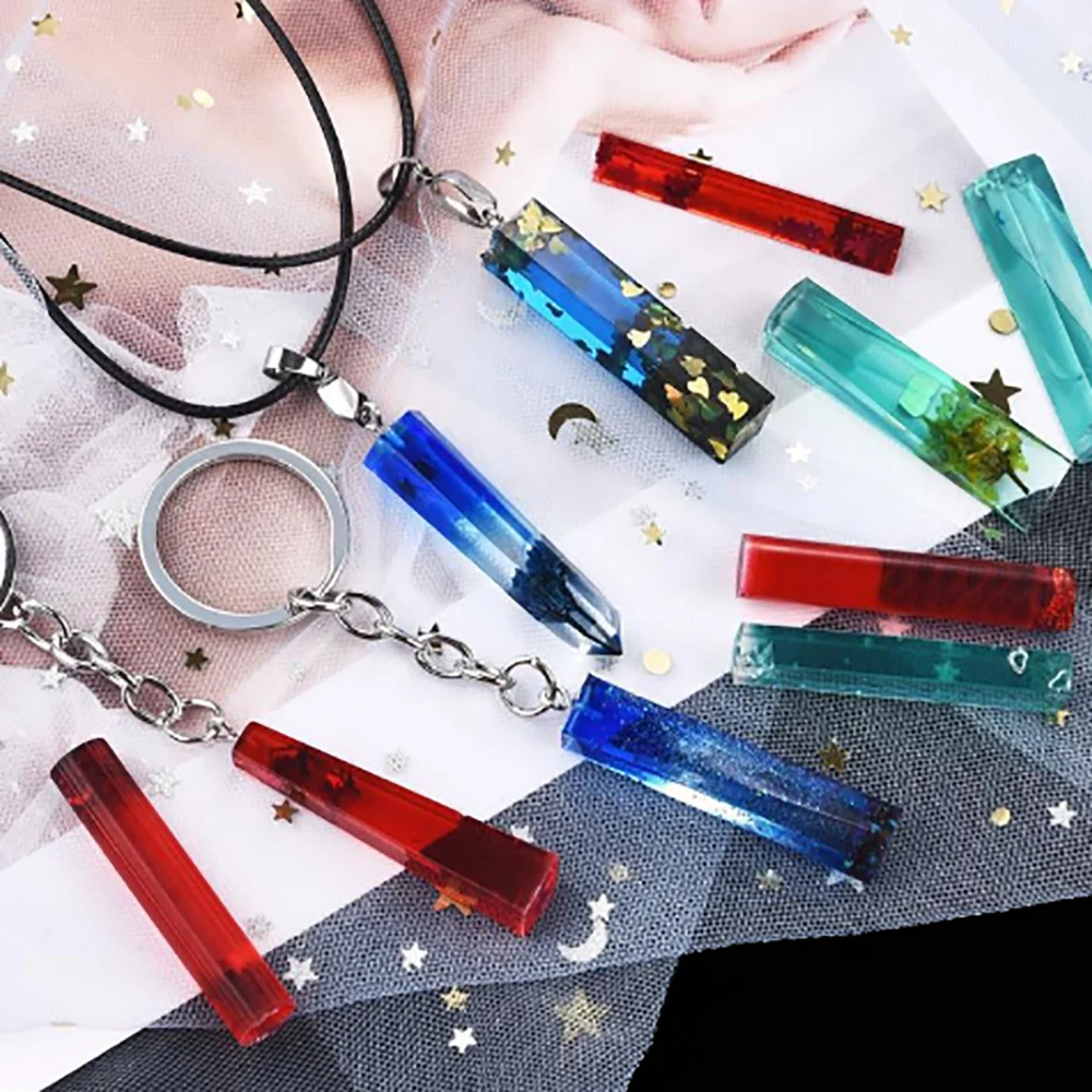 Comprar Llavero transparente hecho a mano, colgante de collar, forma de molde de silicona, gota de cristal Artificial, pegamento, cilindro largo de joyería, 1 unidad