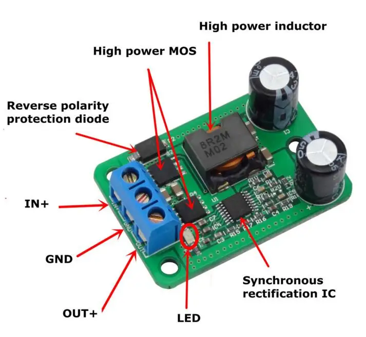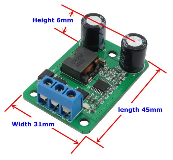 Voltaje de entrada:9-35 V (el voltaje límite máximo es 35 v, deje un margen de uso; de lo contrario, se dañará)