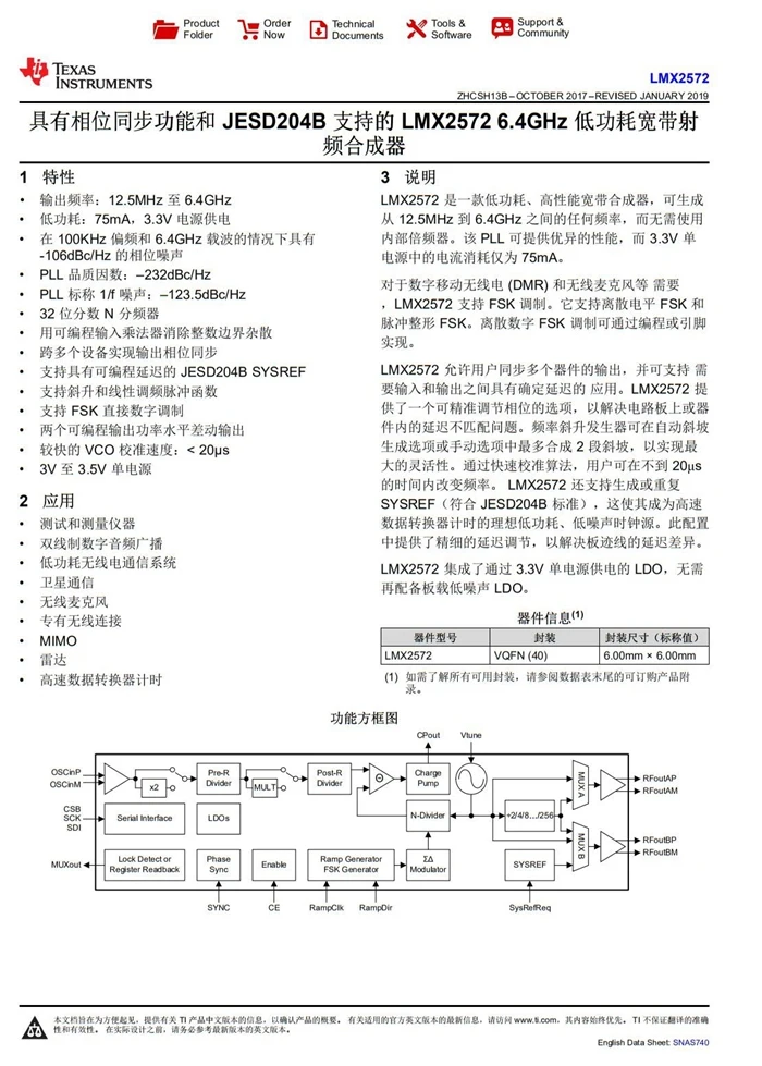Comprar LMX2572 Módulo de bucle de bloqueo de fase de baja potencia y bajo ruido 80mA 12,5 M-6,4 GHZ