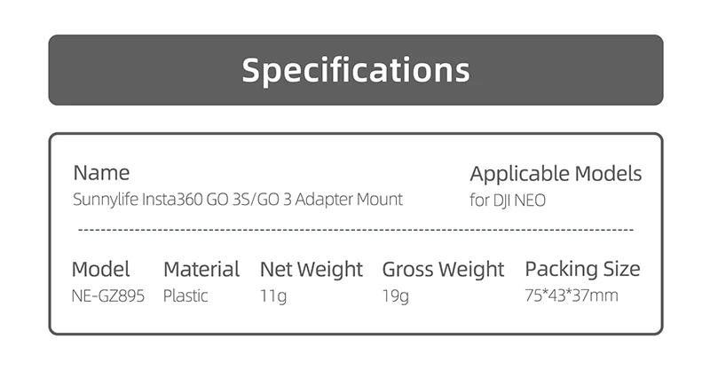 Para lnsta360GO 3S/GO3, adaptador ajustable, montaje en marco, soporte extensible de vuelo para accesorios de Dron DJl NEO