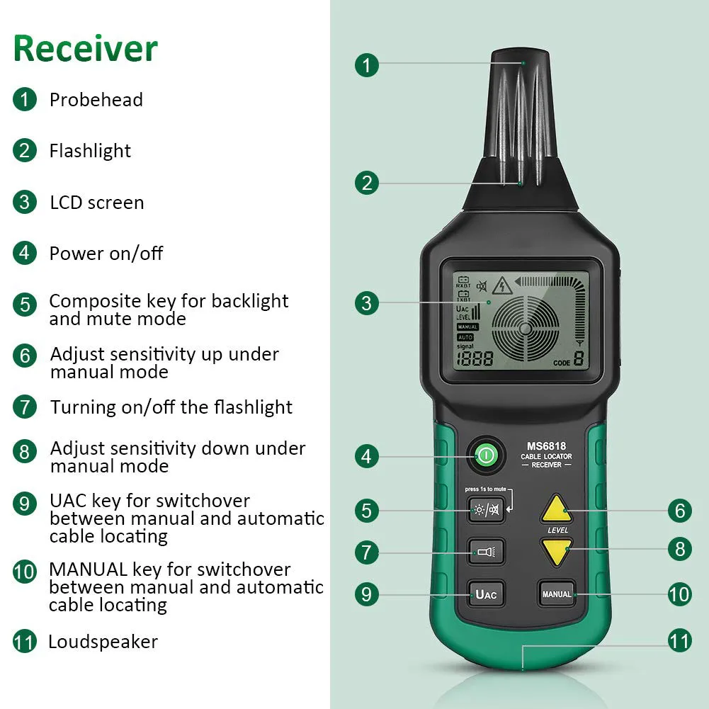 Comprar Localizador de cables de prueba MS6818, Detector de tuberías subterráneas, buscador de tóner de cables