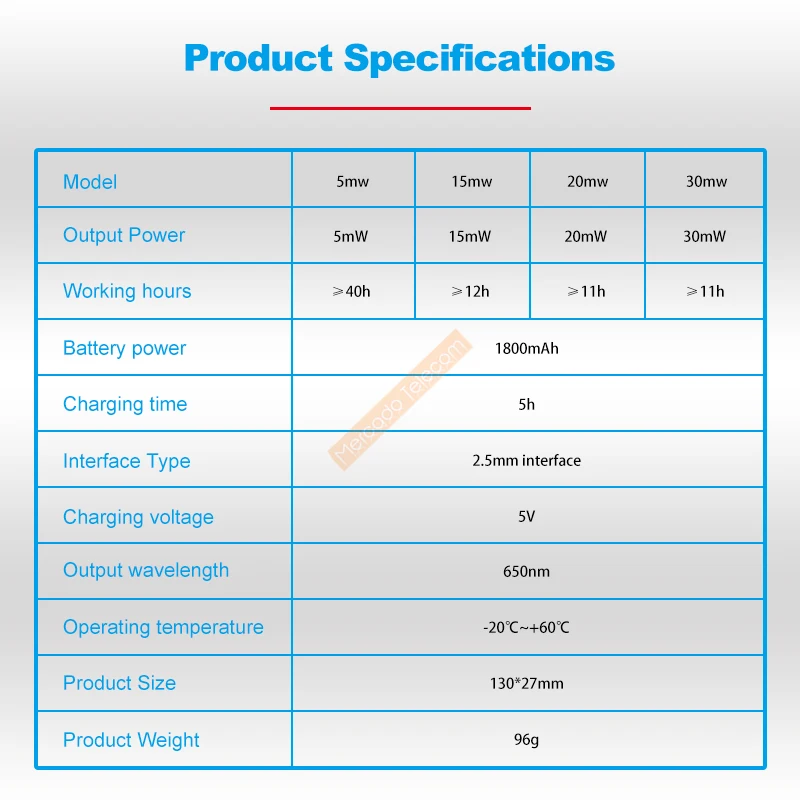 Potencia de salida: 5mW/15mW/20mW/30mW