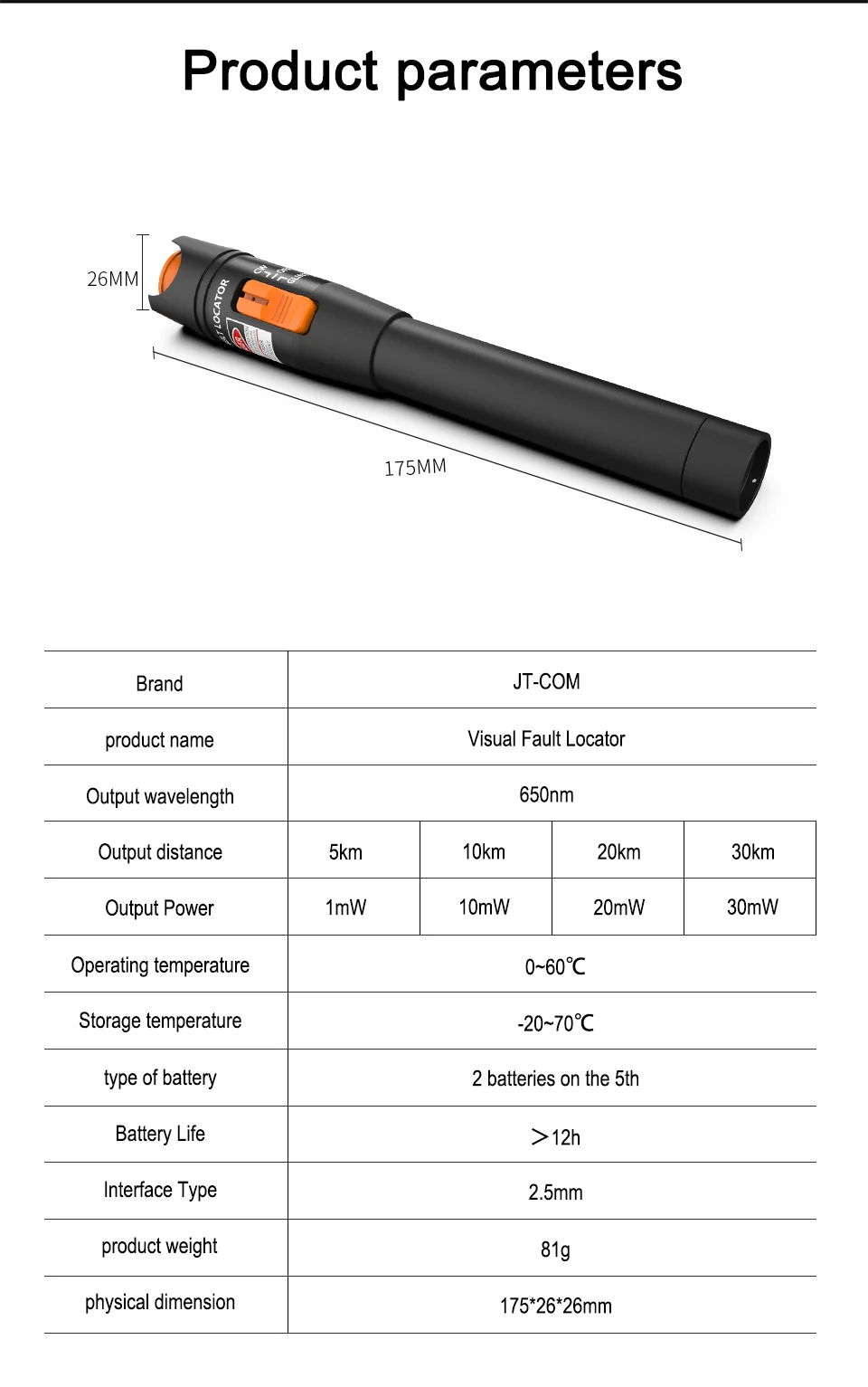 Comprar Localizador de fallas visuales de 10mW 30mW/20mW/10mW/1mW probador de Cable de fibra óptica 5km 10km 30 km VFL envío gratis