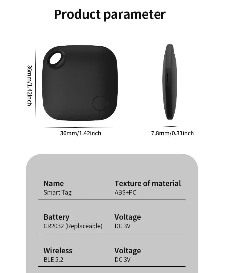 【Trabaja con la aplicación Apple Find My】Esta etiqueta inteligente se integra perfectamente con la aplicación Apple Find My, brindándole una experiencia de seguimiento confiable y fácil de usar.Conecte la tarjeta sin esfuerzo a su iPhone u otros dispositivos Apple y disfrute de la flexibilidad de rastrear sus pertenencias desde su dispositivo Apple preferido, asegurándose de estar siempre conectado y en control.