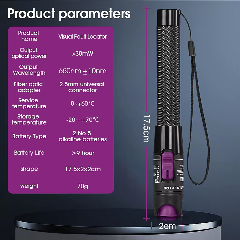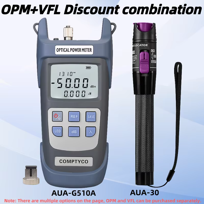 Localizador visual de fallos (30/1/10/20/50 mw VFL) y medidor de potencia óptica (OPM -50 ~ + 26 dBm) Kit de herramientas de prueba de cables de fibra óptica FTTH (opcional)